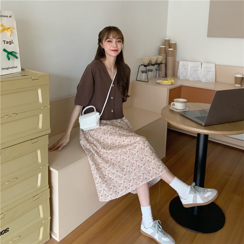 色:コーヒートップ,フローラルスカート