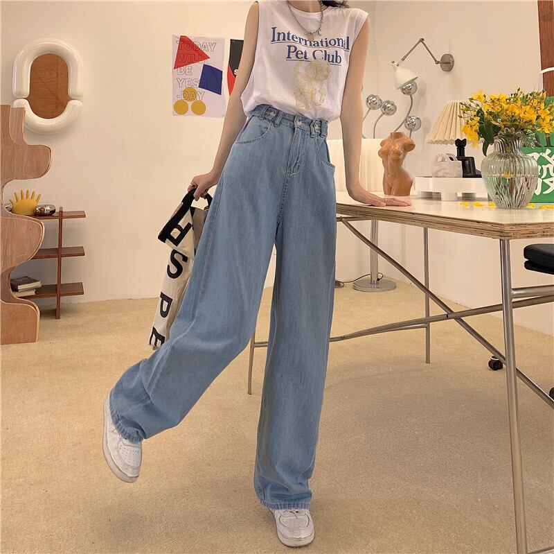 スタンダードジーンズ サマールーズハイウェストウェストスリムカジュアルパンツ レトロ 夏物 クレセントシティ39620840300