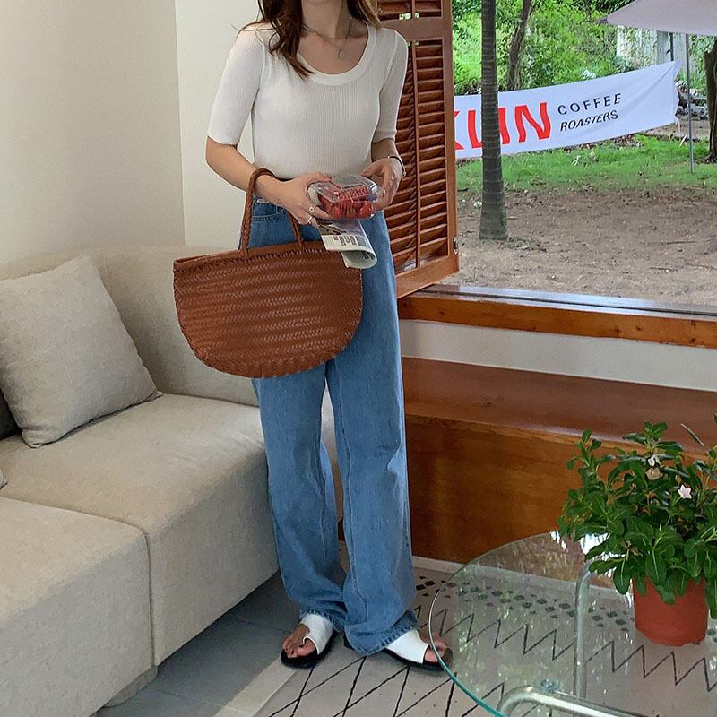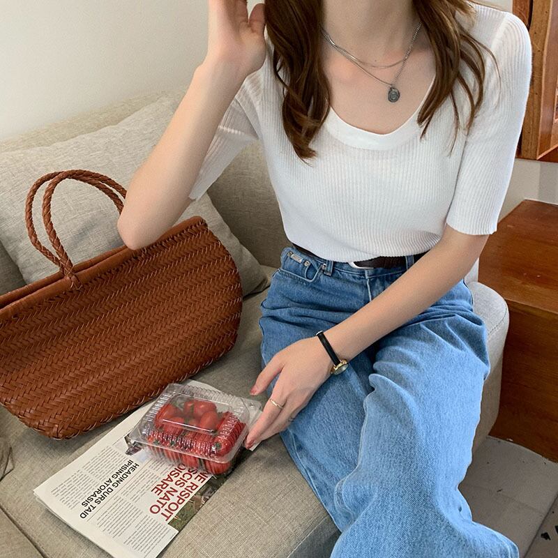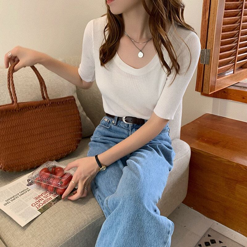 薄手ニットセーター レディースサマースリムソリッド カラートップス 夏物 ソリッドカラー クレセントシティ84052689510