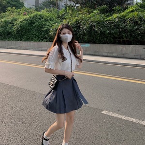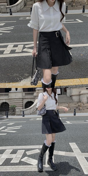 スタイルスカート サマーカジュアルルーズホワイトシャツ ブラックハイウェストウェスト薄手Aラインプリーツ 夏物 クレセントシティ86619835125
