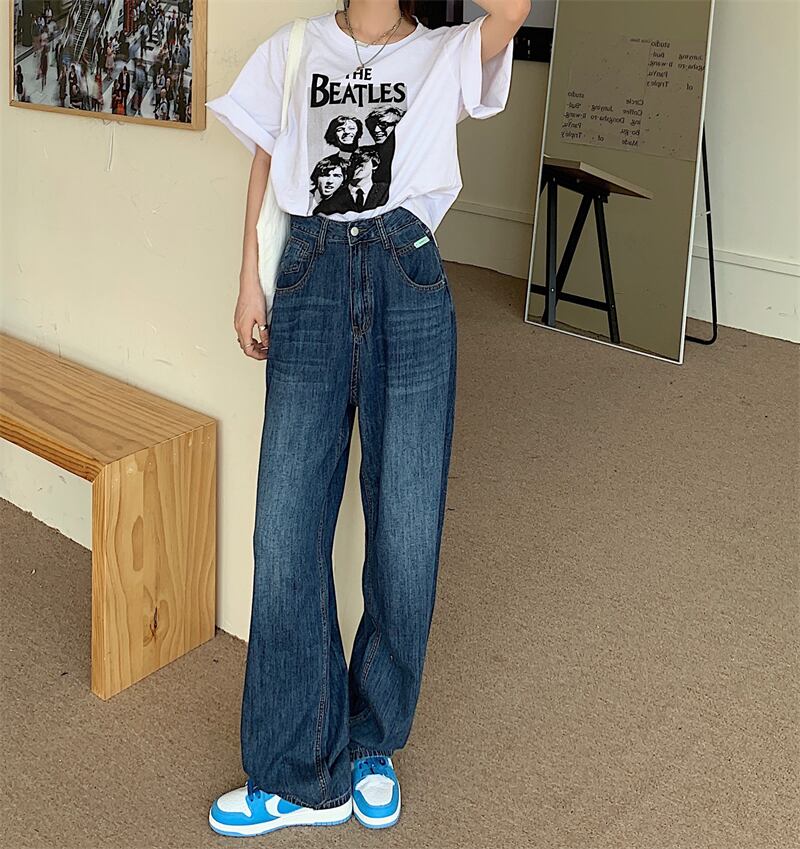 ワイドレッグハイウェストウェストジーンズ レディースサマースタンダードルーズ薄手パンツ レトロ 夏物 ワイドパンツ クレセントシティ23941470380
