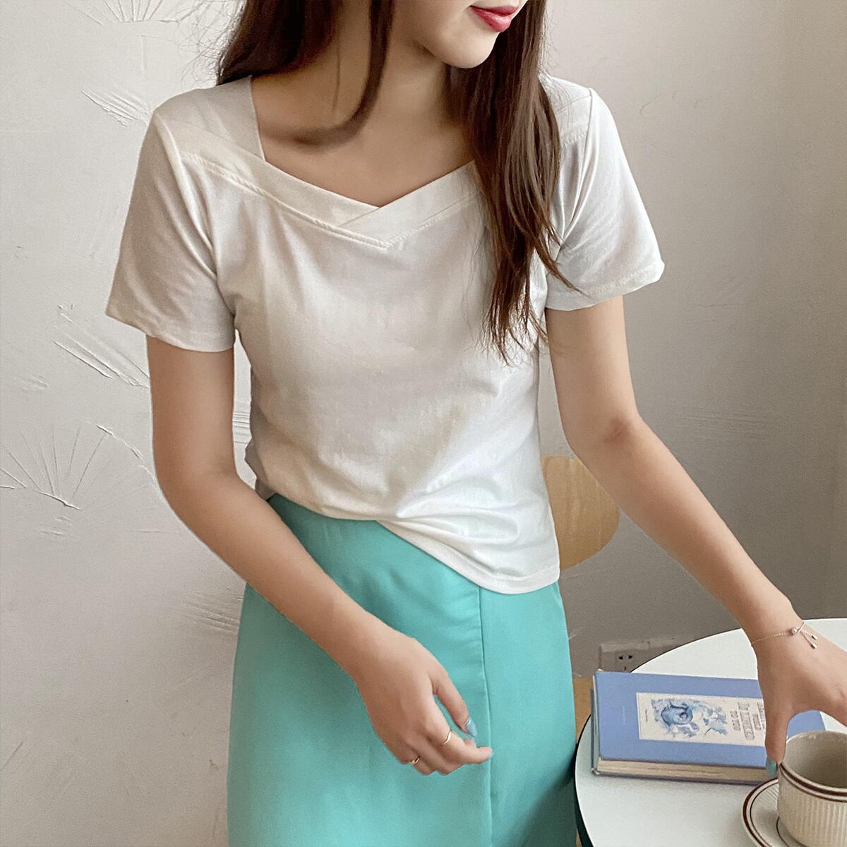 Tシャツ サマーソリッド カラールーズトップス 夏物 ソリッドカラー クレセントシティ32532676250