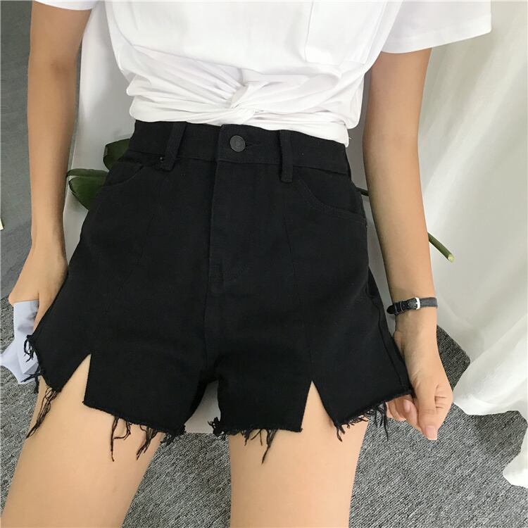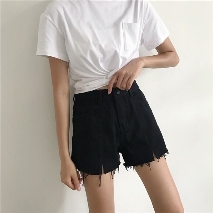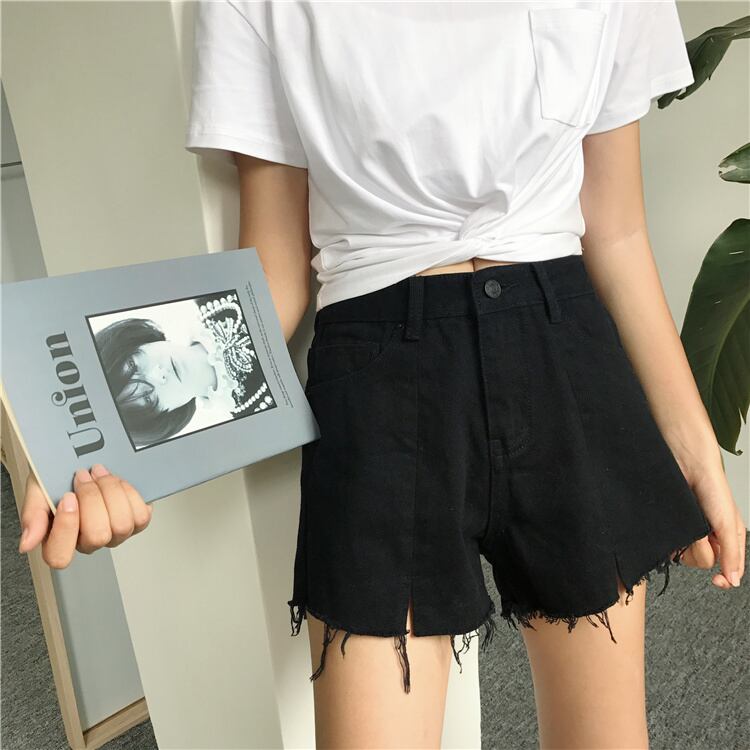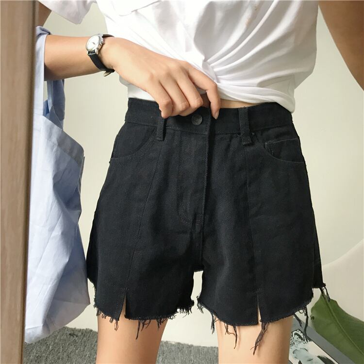 ブラックショーツ サマー薄手スタンダードルーズハイウェストウェストワイドレッグパンツ レトロ 夏物 ブルマー ワイドパンツ クレセントシティ11447289