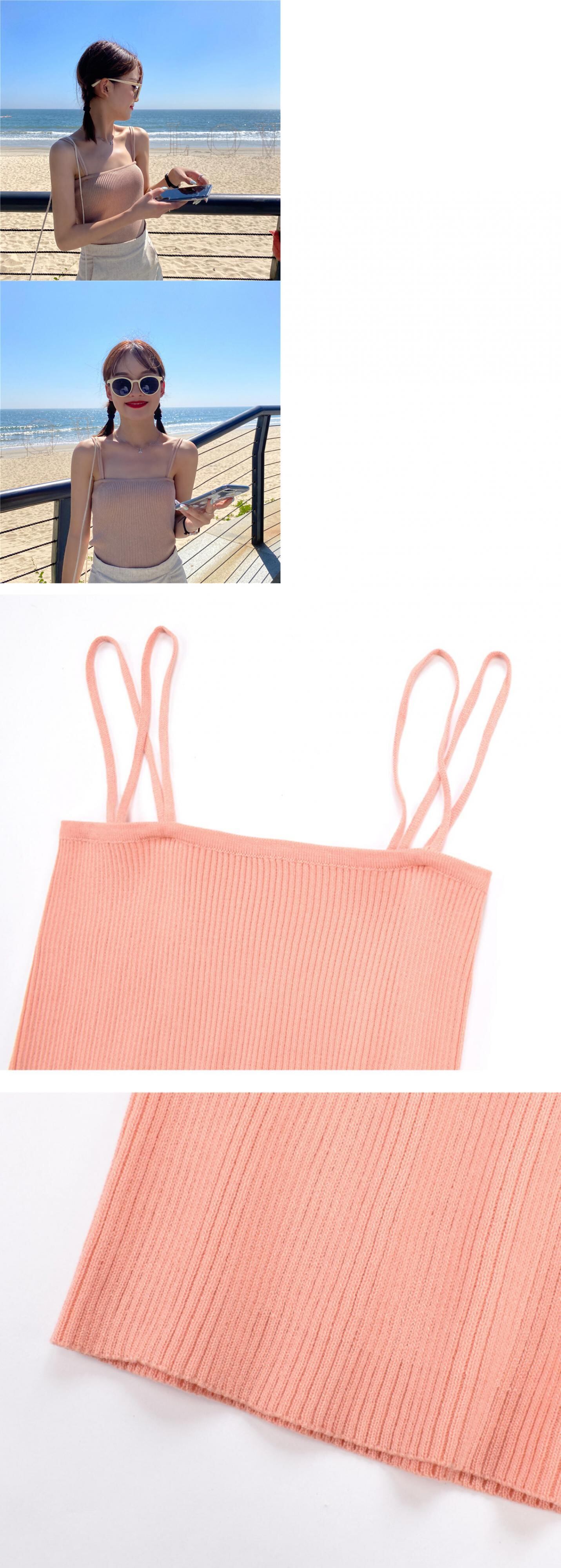 ニットサマースリム薄手ソリッド カラートップス 夏物 ソリッドカラー クレセントシティ41017465738