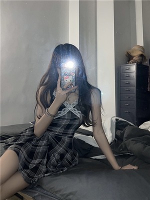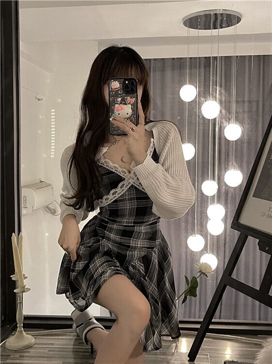 セット スカート サマー薄手ニットブラウス レディースレースウェスト格子柄ドレス 夏物 クレセントシティ48496376941