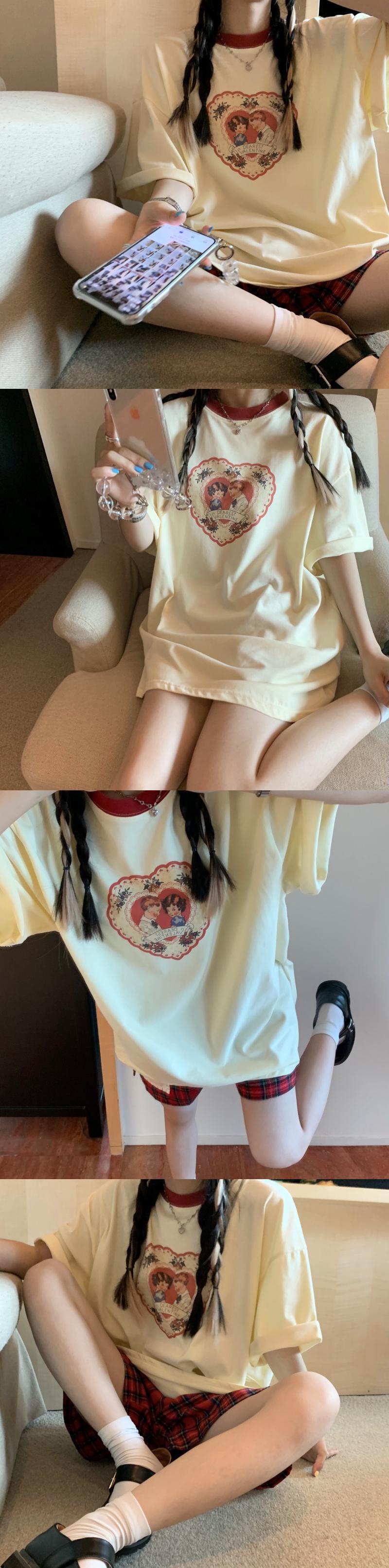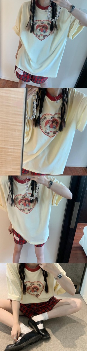 スタンダードTシャツ シャツ サマープリントカジュアルルーズカラー レトロ 夏物 クレセントシティ78464555651