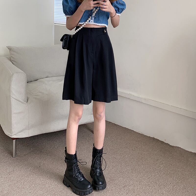 ブラックショーツ サマールーズパンツ ハイウェストカジュアル 夏物 ブルマー クレセントシティ17865861257