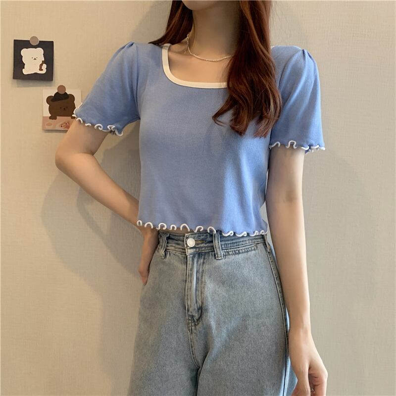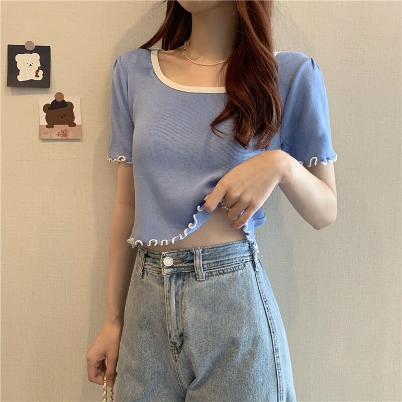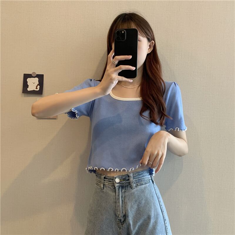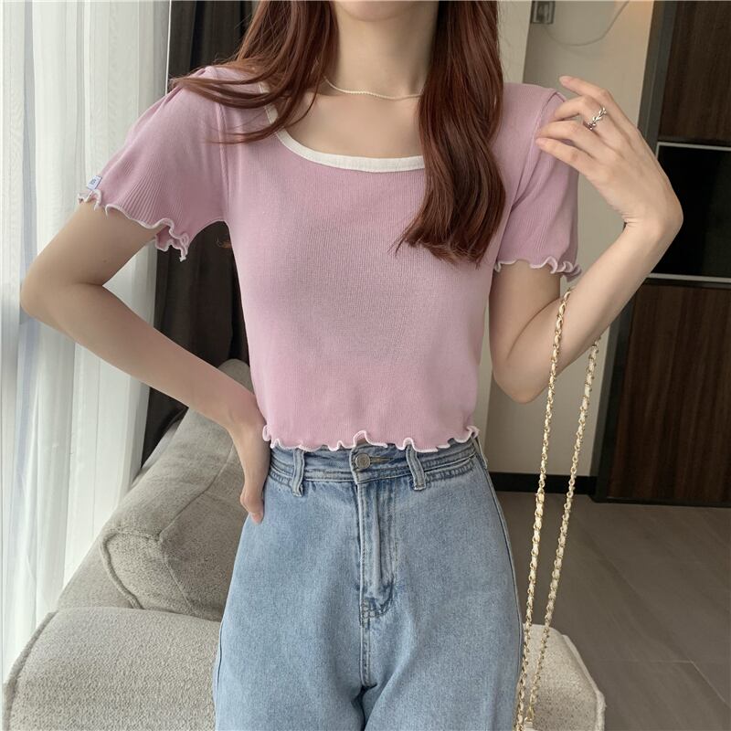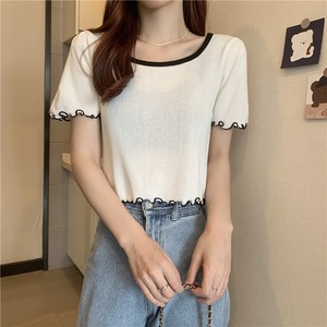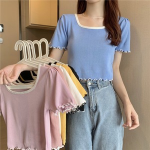 ショートTシャツ レディースサマースリムニットトップス 夏物 スクウェア クレセントシティ27924121390