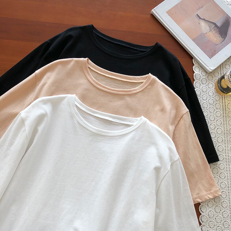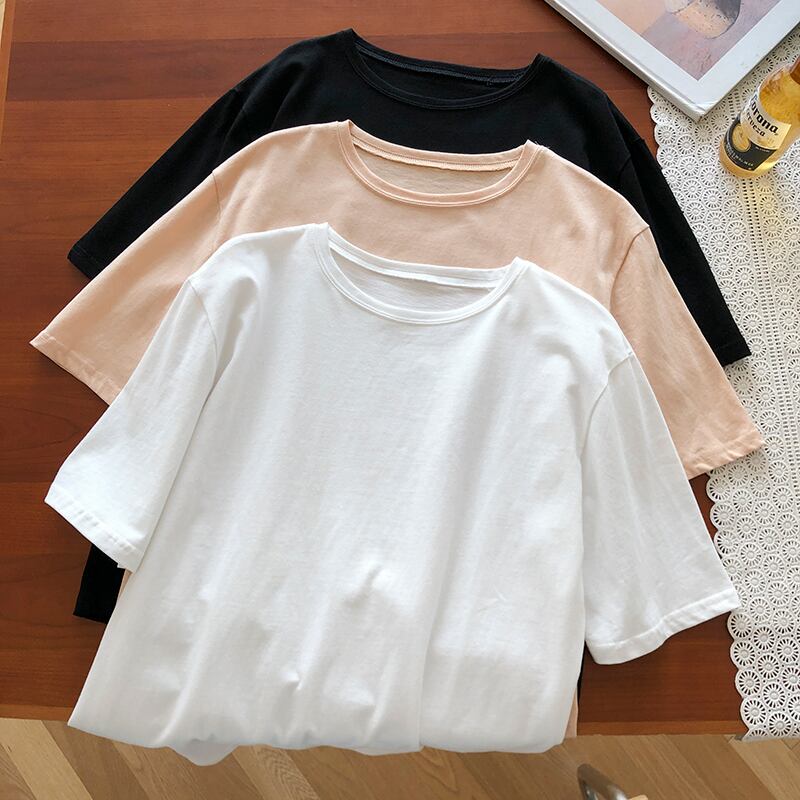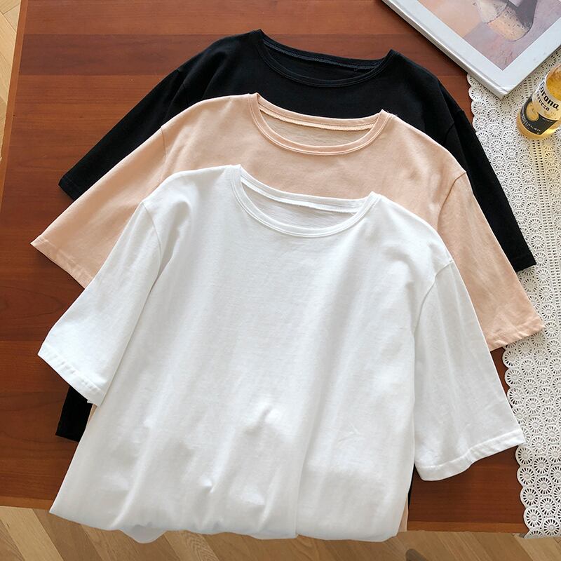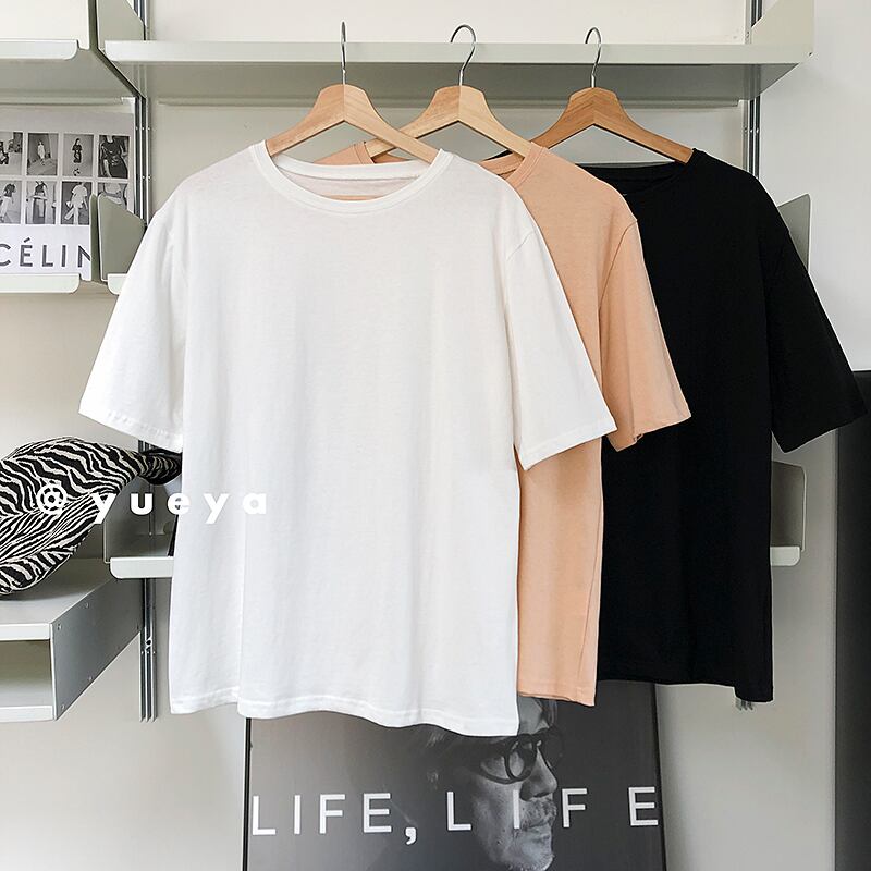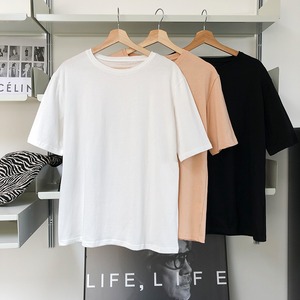 ソリッド カラーTシャツ レディースサマールーズ薄手ラウンドネックカジュアルトップス 夏物 Oネック ソリッドカラー クレセントシティ83083118771