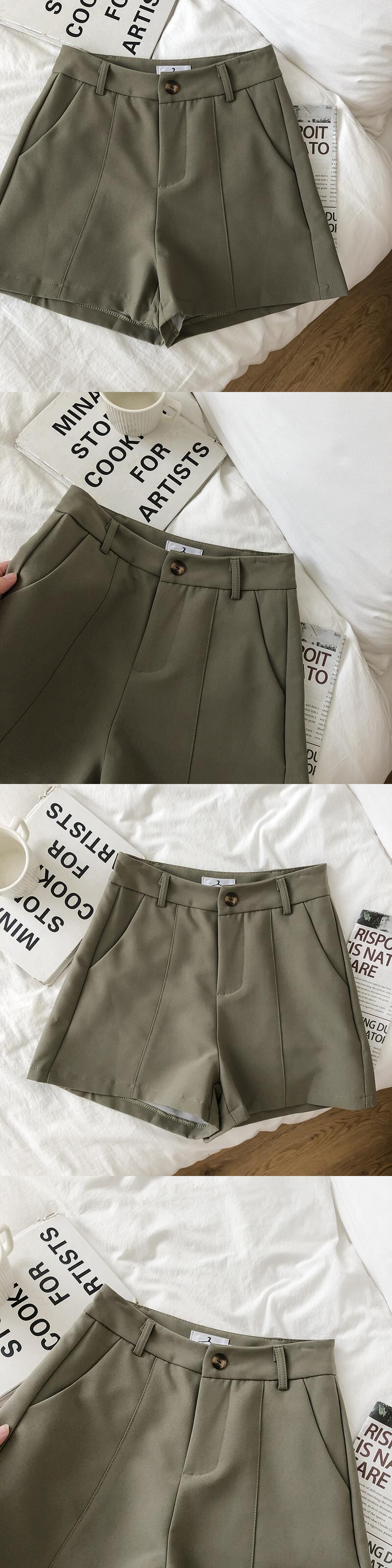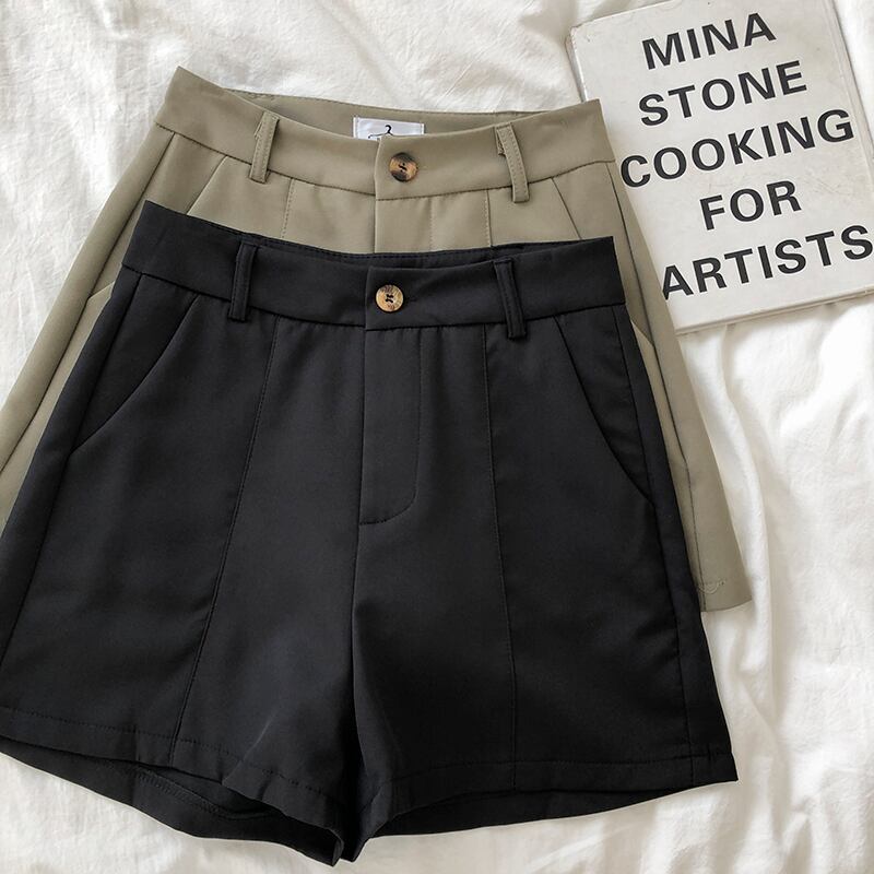 ソリッド カラーハイウェストウェストカジュアルパンツ レディースサマールーズ薄手ショーツ 夏物 ブルマー ソリッドカラー クレセントシティ29862937844