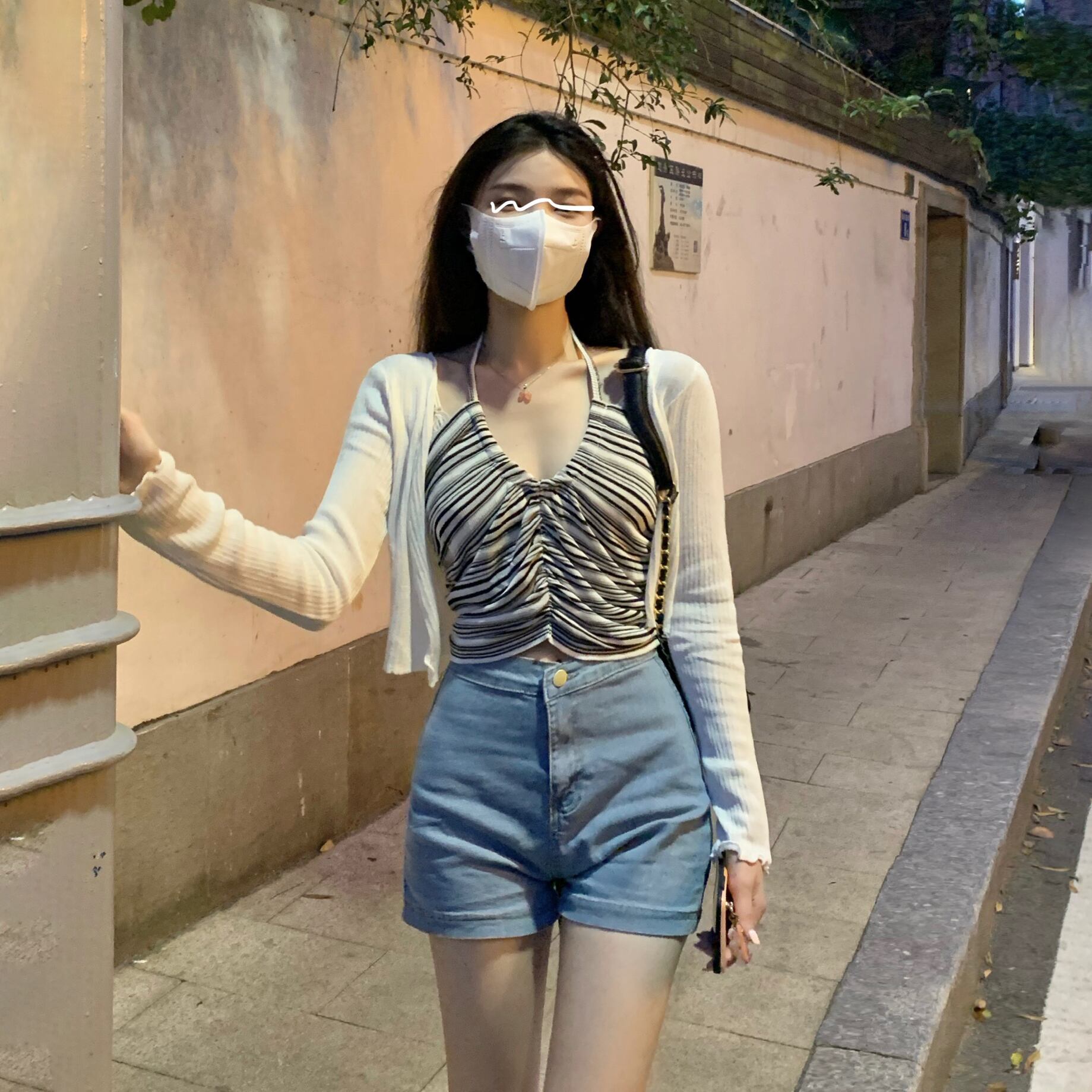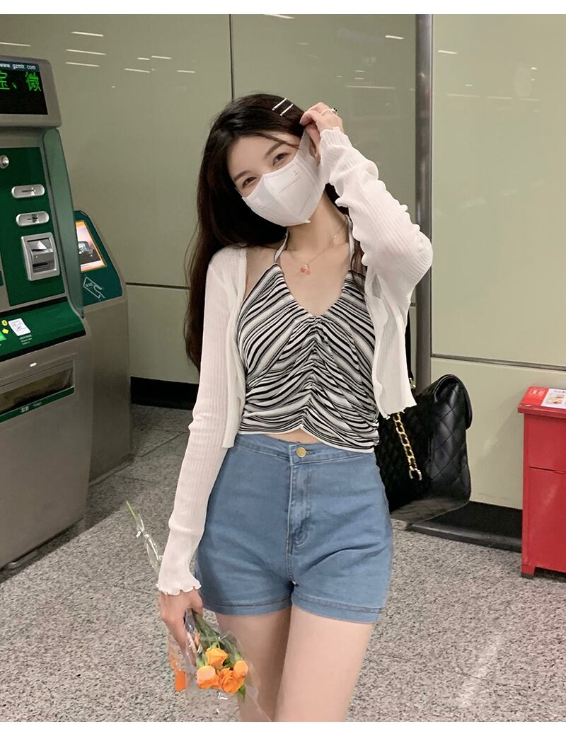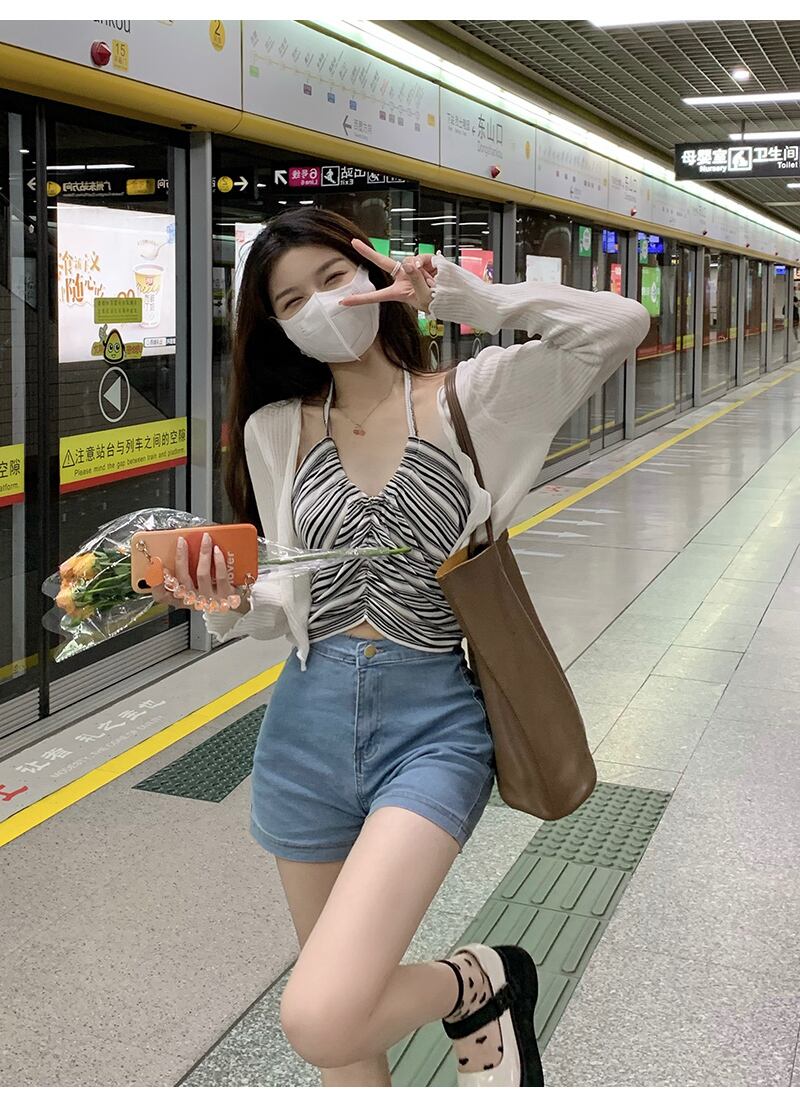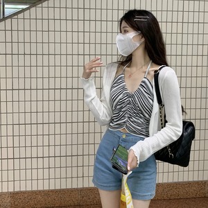 サマー薄手ニットカーディガンレディースパターンスリムホルター 夏物 クレセントシティ7501438824