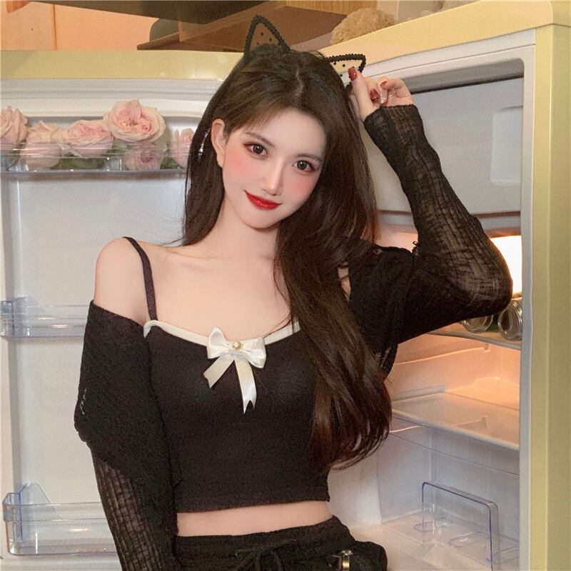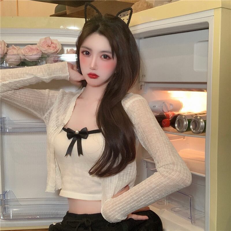サマー薄手ニットカーディガンスリム ロング リボン 夏物 クレセントシティ61382147119