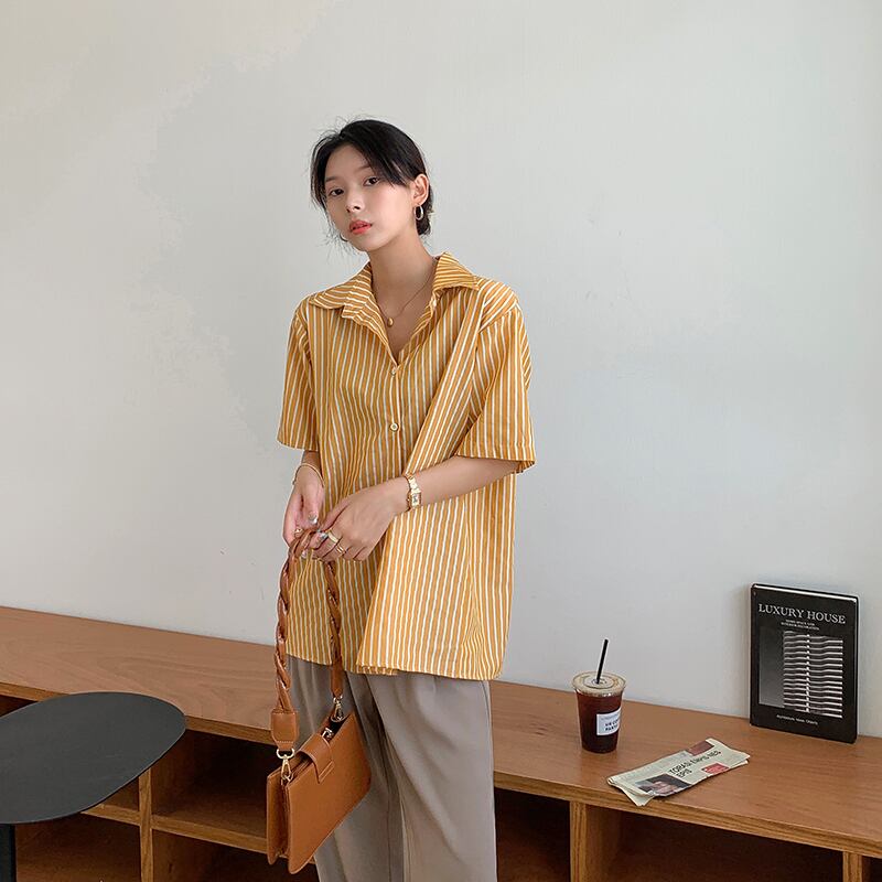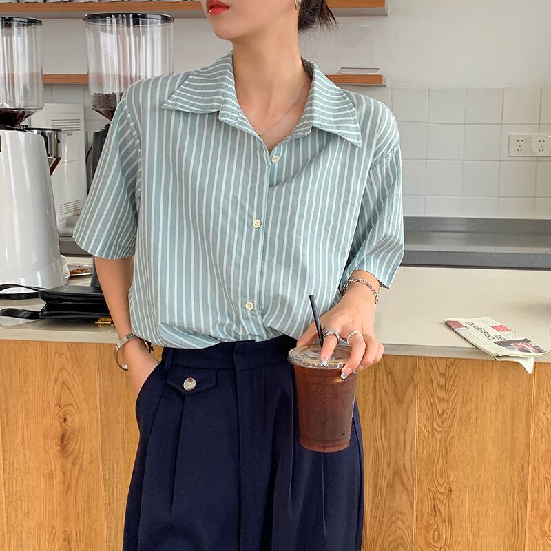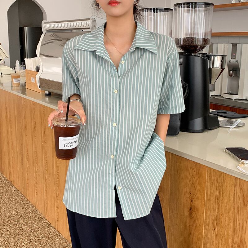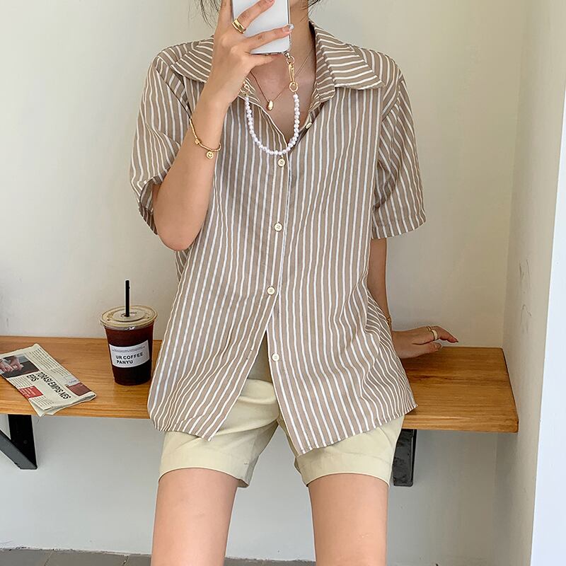 ストライプシャツ レディースサマースタイルカジュアルルーズ 夏物 クレセントシティ56631458277