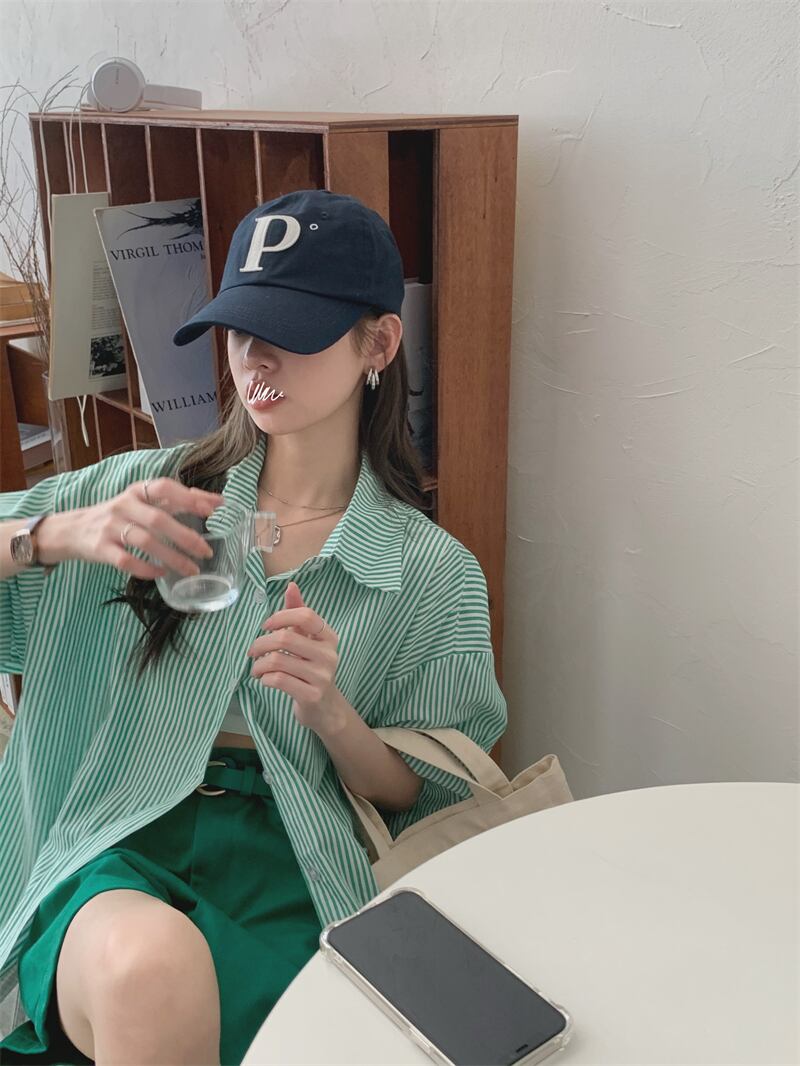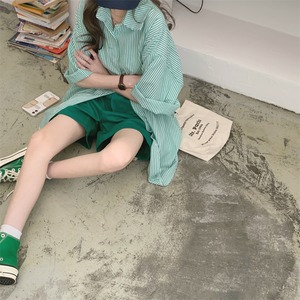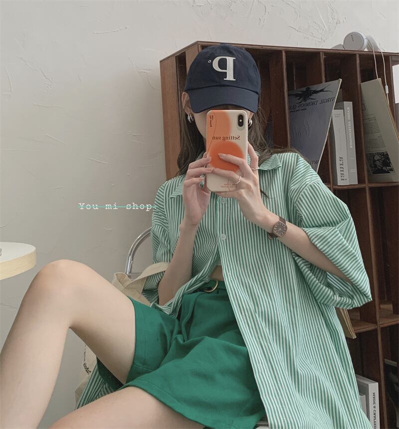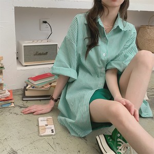 ルーズストライプシャツ レディースサマーカジュアルカラースリムロング 夏物 スクウェア クレセントシティ16055870204