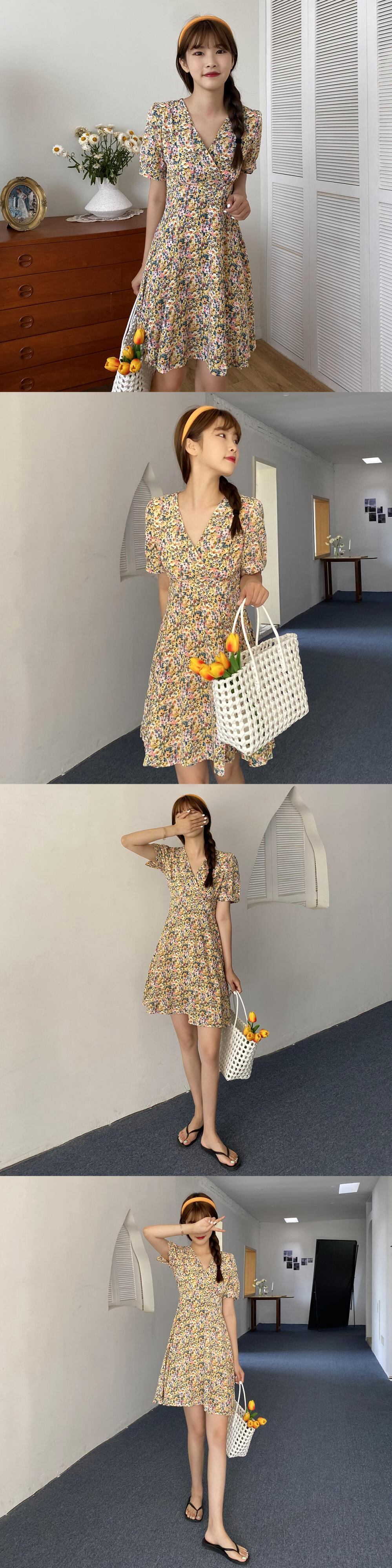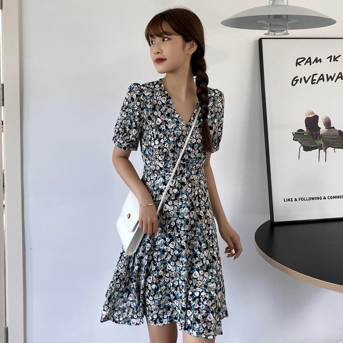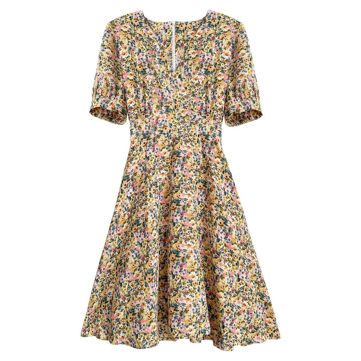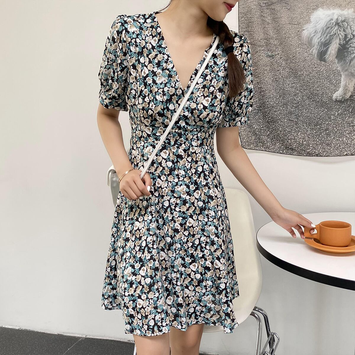 ドレス サマーVネックウェスト薄手フローラルAラインスカート 大人ガーリー スウィート キュート カジュアル 夏物 花柄 クレセントシティ60686651082