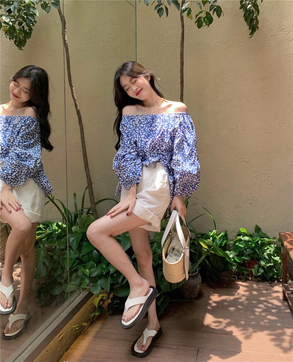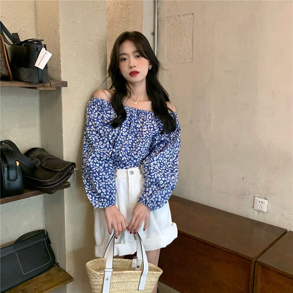 レディースサマーウェストワイドレッグショーツ 長袖スリーブオフショルダーフローラルシャツ ロング ストリート 夏物 アジャスタブル ブルマー 花柄 ワイドパンツ クレセントシティ23935253625