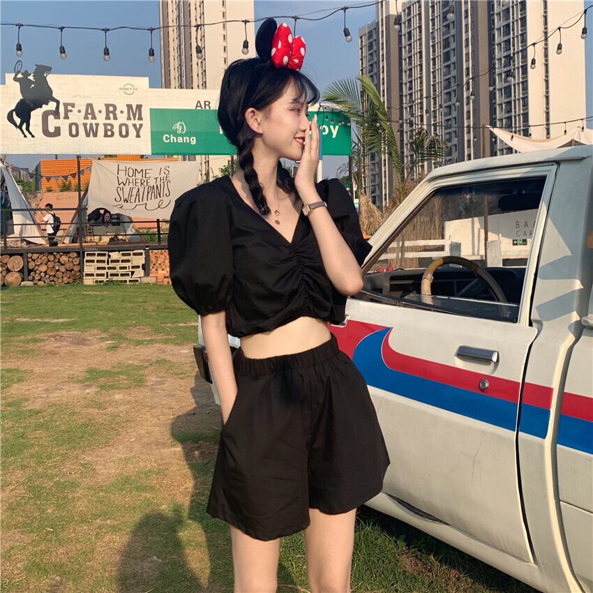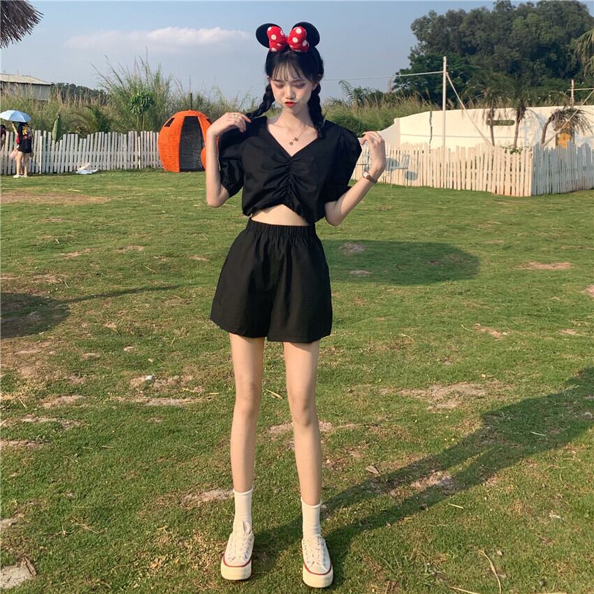 サマースリーブブラックショートシャツ ルーズカジュアル薄手ショーツ 夏物 ブルマー クレセントシティ51497957724