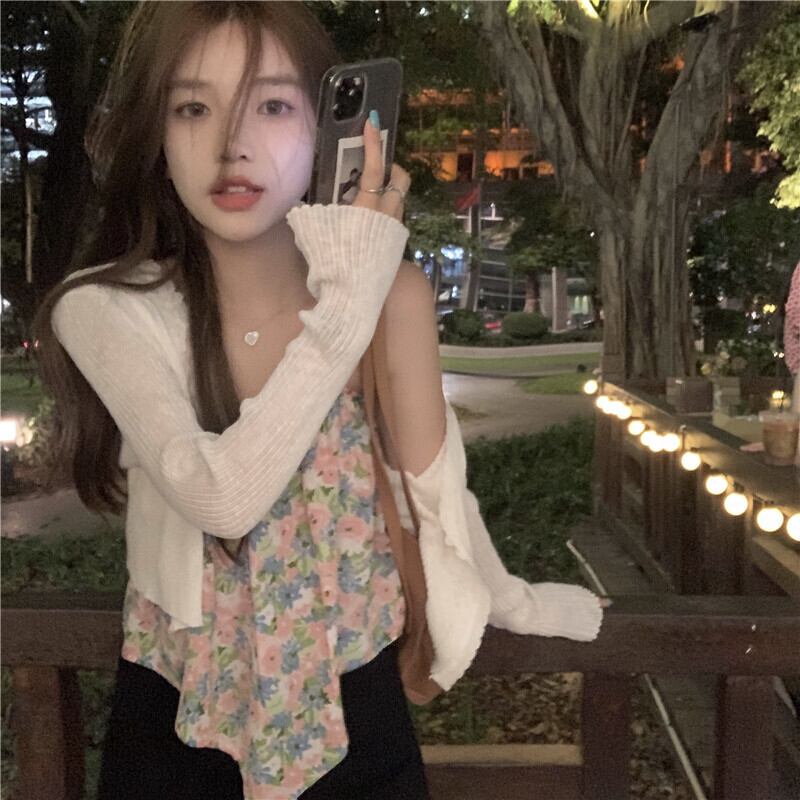色:フローラルストラップ,白いカーディガン