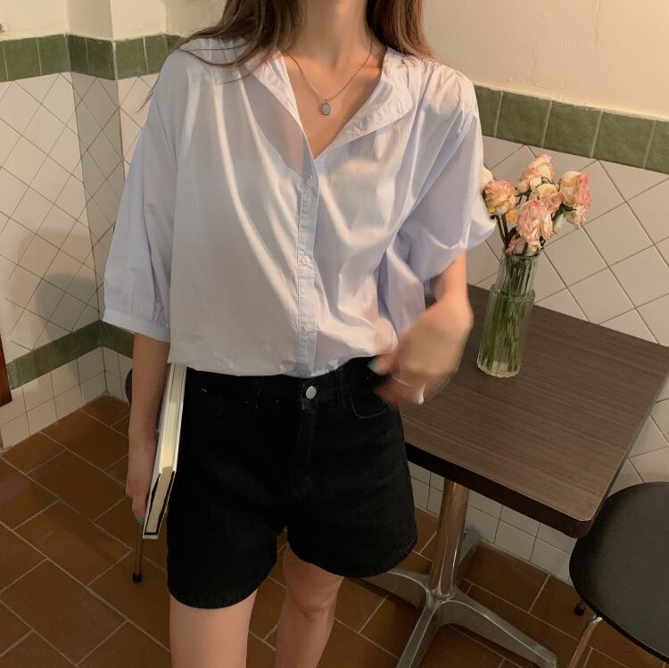 ホワイトシャツ サマースタイルルーズ薄手 大人ガーリー スウィート キュート カジュアル 夏物 クレセントシティ35517693456