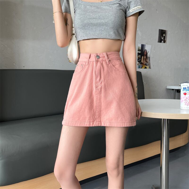 ジーンズ サマーハイウェストウェストAラインスカート ピンク 夏物 クレセントシティ67637340116