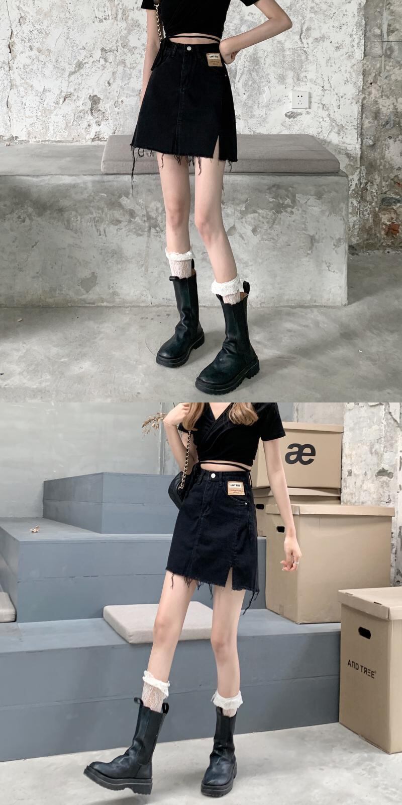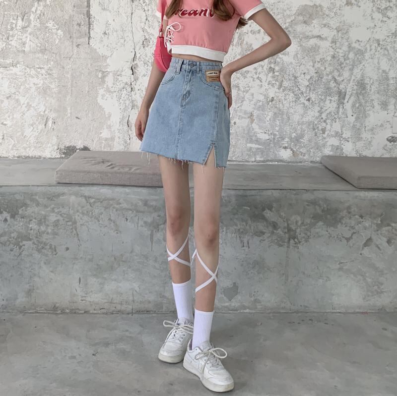 スリットスカート サマーAラインハイウェストウェスト薄手 夏物 クレセントシティ89295858191