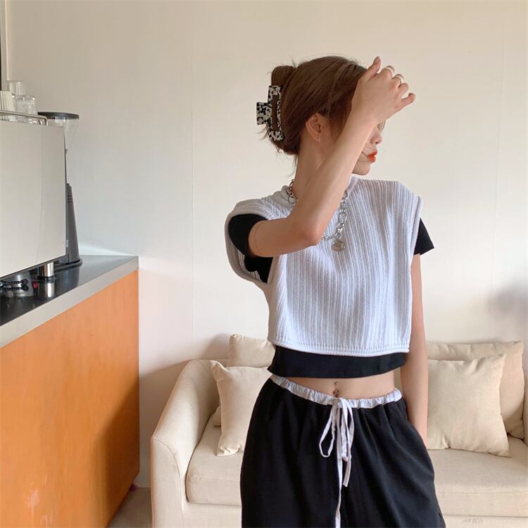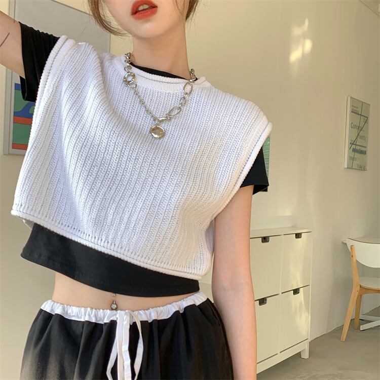 薄手ニットセーター レディースサマールーズショートノースリーブトップス レッド 半袖 ハーフスリーブ 夏物 クレセントシティ83408948609