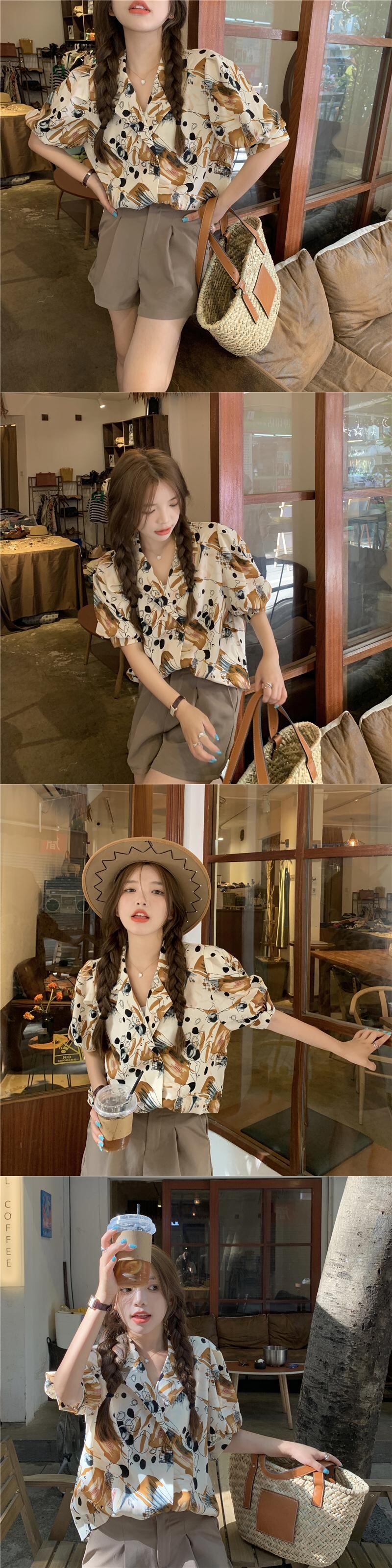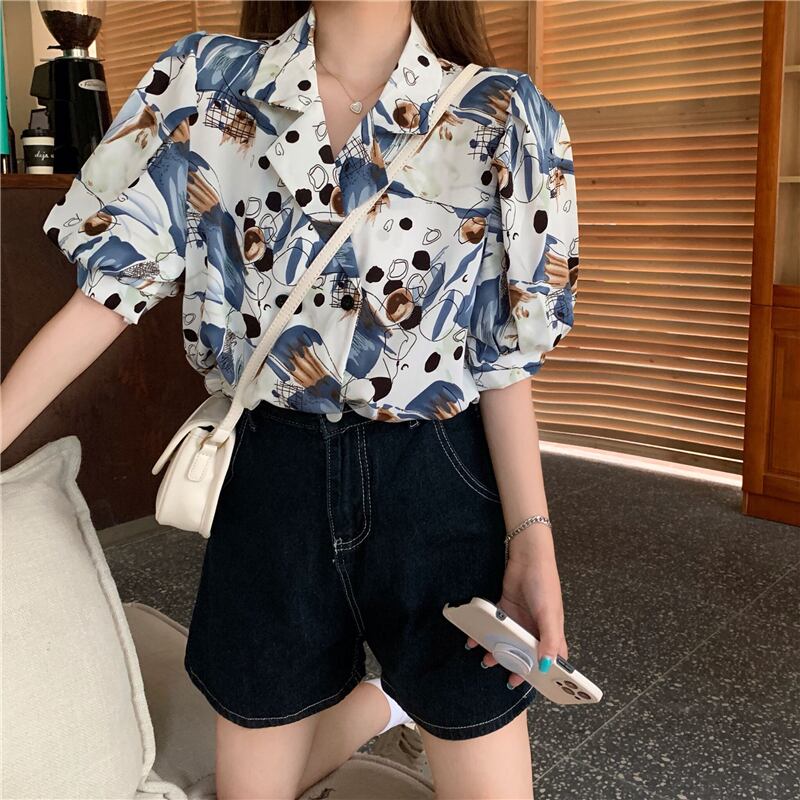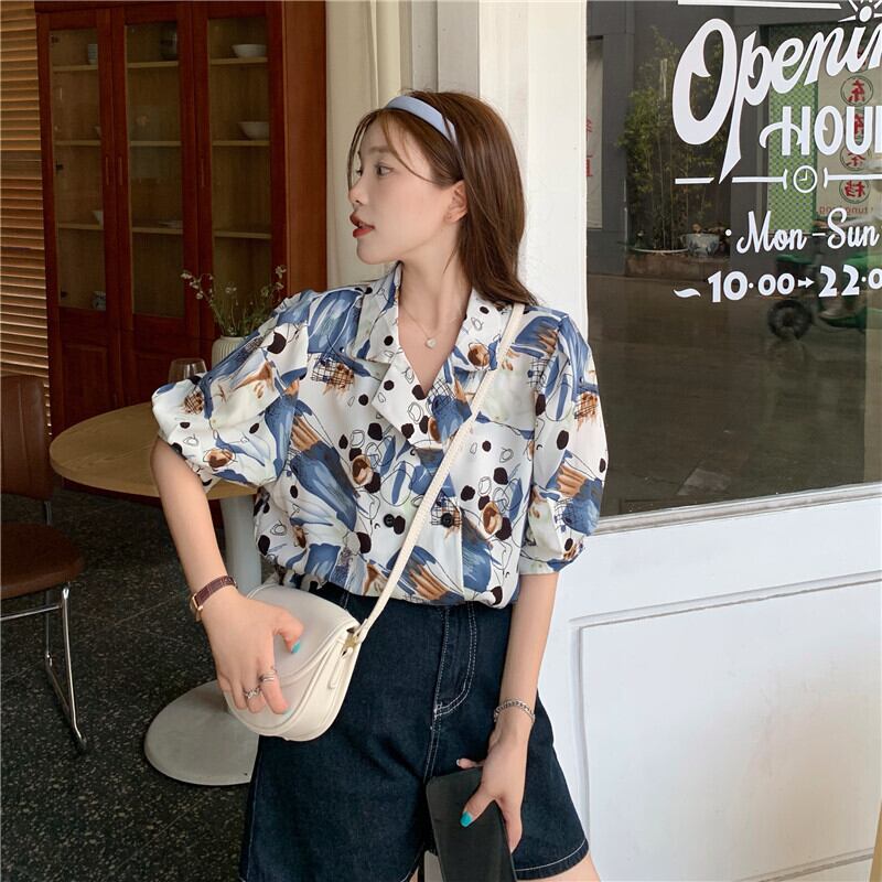 プリントシャツ サマースタンダードルーズカジュアル レトロ 夏物 クレセントシティ73731567647