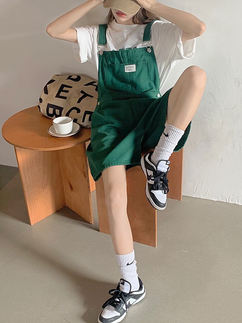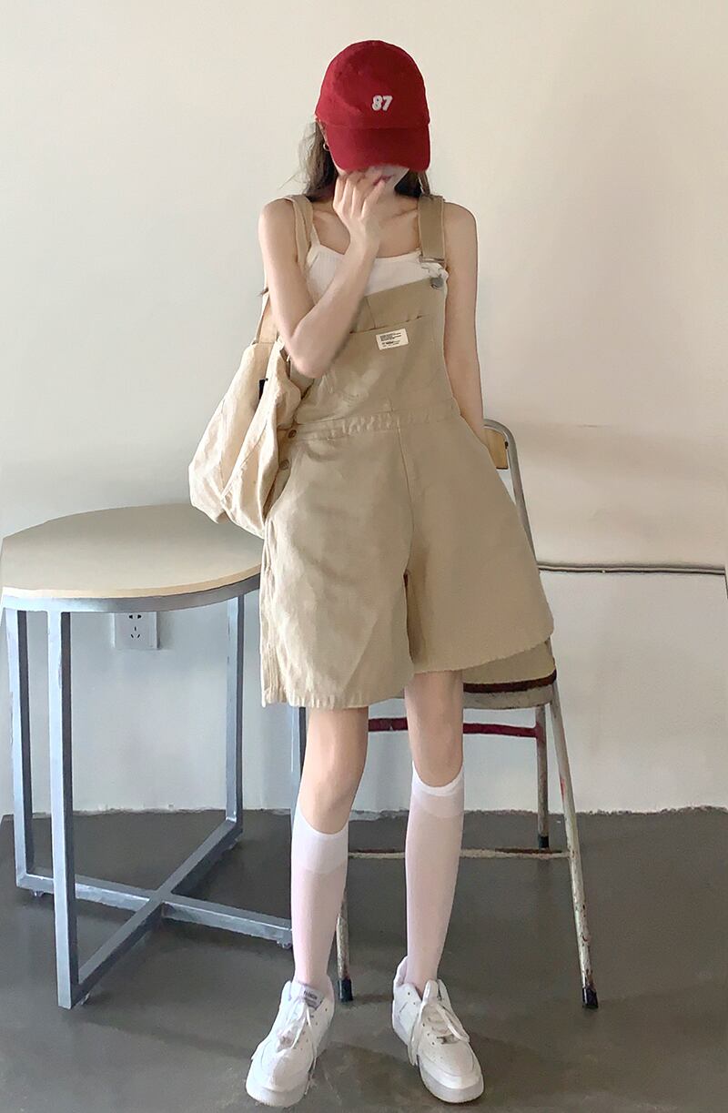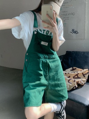 サマーオーバーオール ハイウェスト薄手ジャンプスーツ オールインワン 夏物 ショーツ ブルマー クレセントシティ85863944240