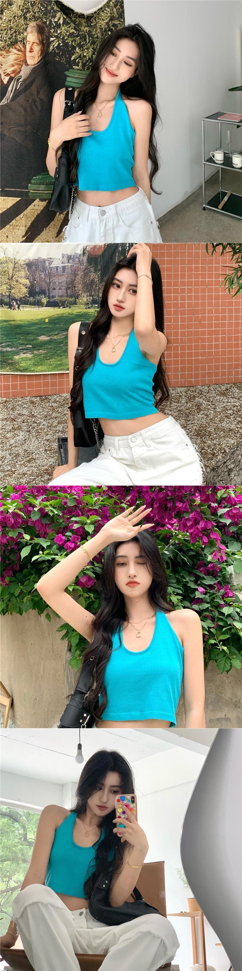 スリムホルターレディースサマースタイルクロップドトップス ストリート 夏物 クレセントシティ50770775333