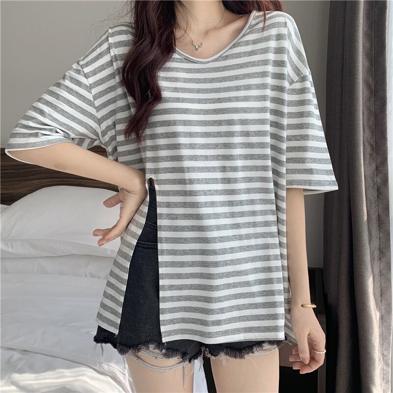 ストライプTシャツ サマールーズ薄手ロングトップス 夏物 クレセントシティ13133996278