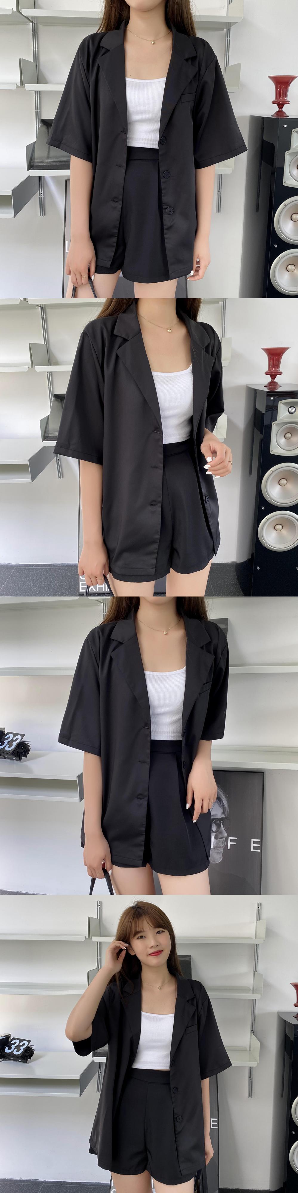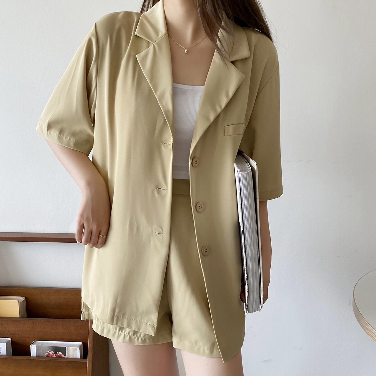 サマーウェストワイドレッグショーツ ルーズ薄手半袖スリーブジャケット ショート ハーフスリーブ 夏物 ブルマー ワイドパンツ クレセントシティ95092686476