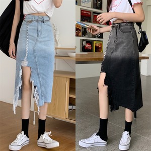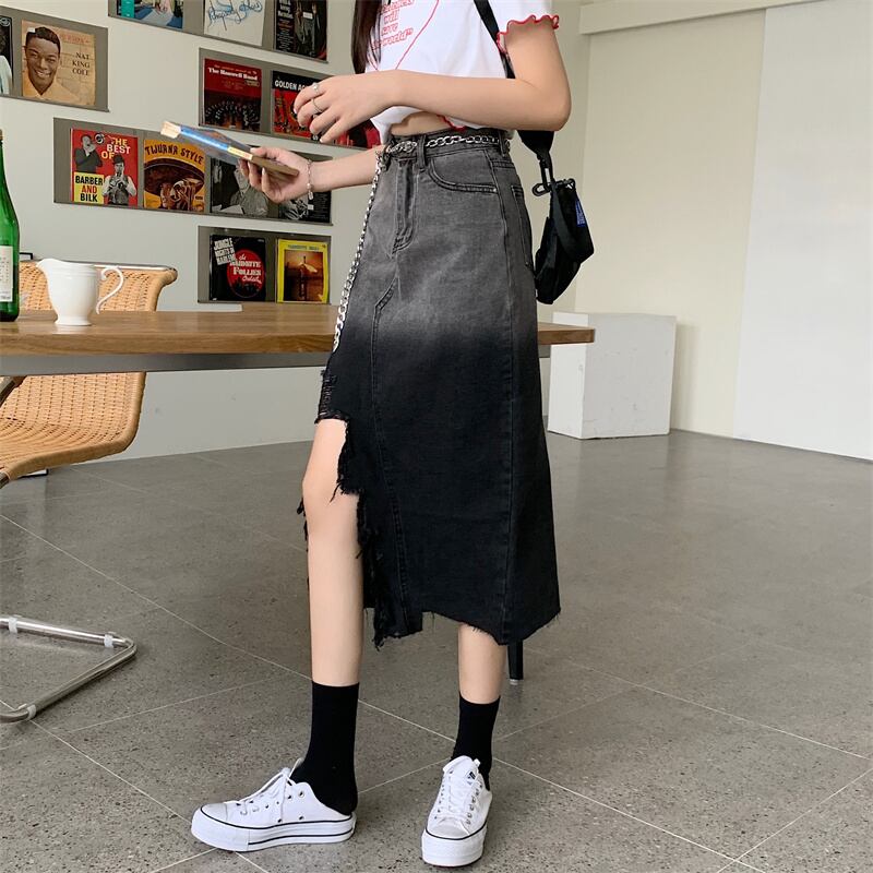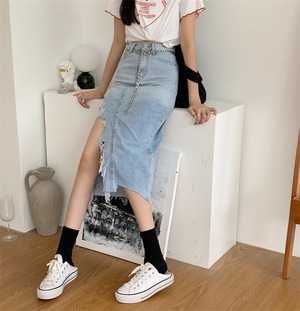 スリットスカート サマーハイウェストウェスト薄手Aライン 夏物 クレセントシティ99156739653