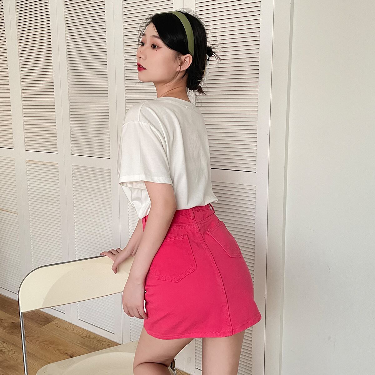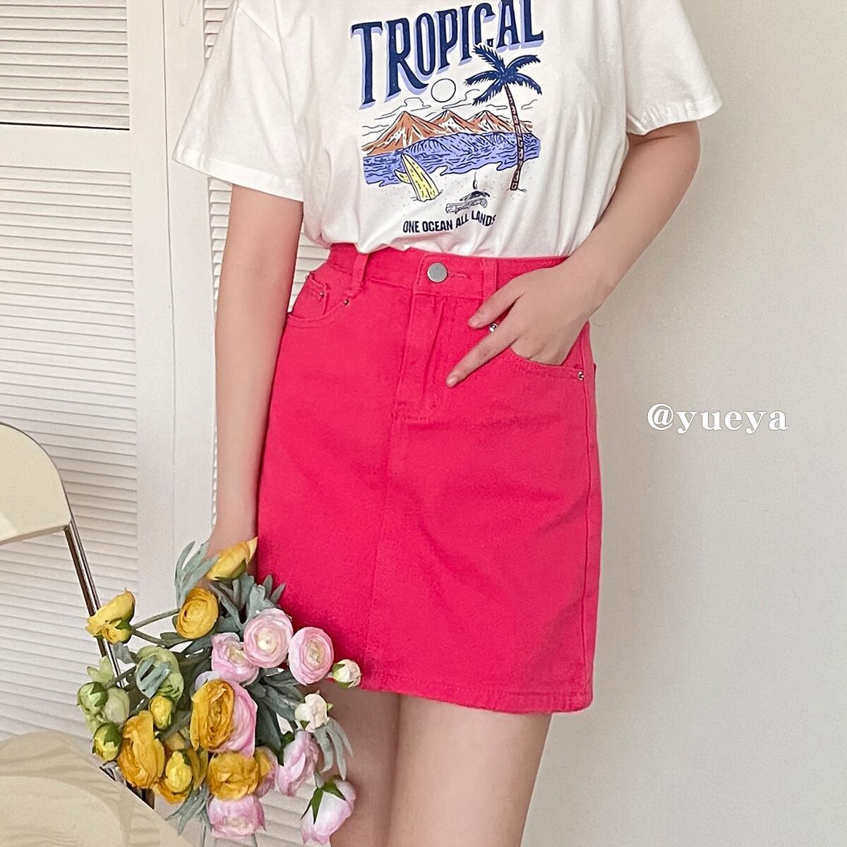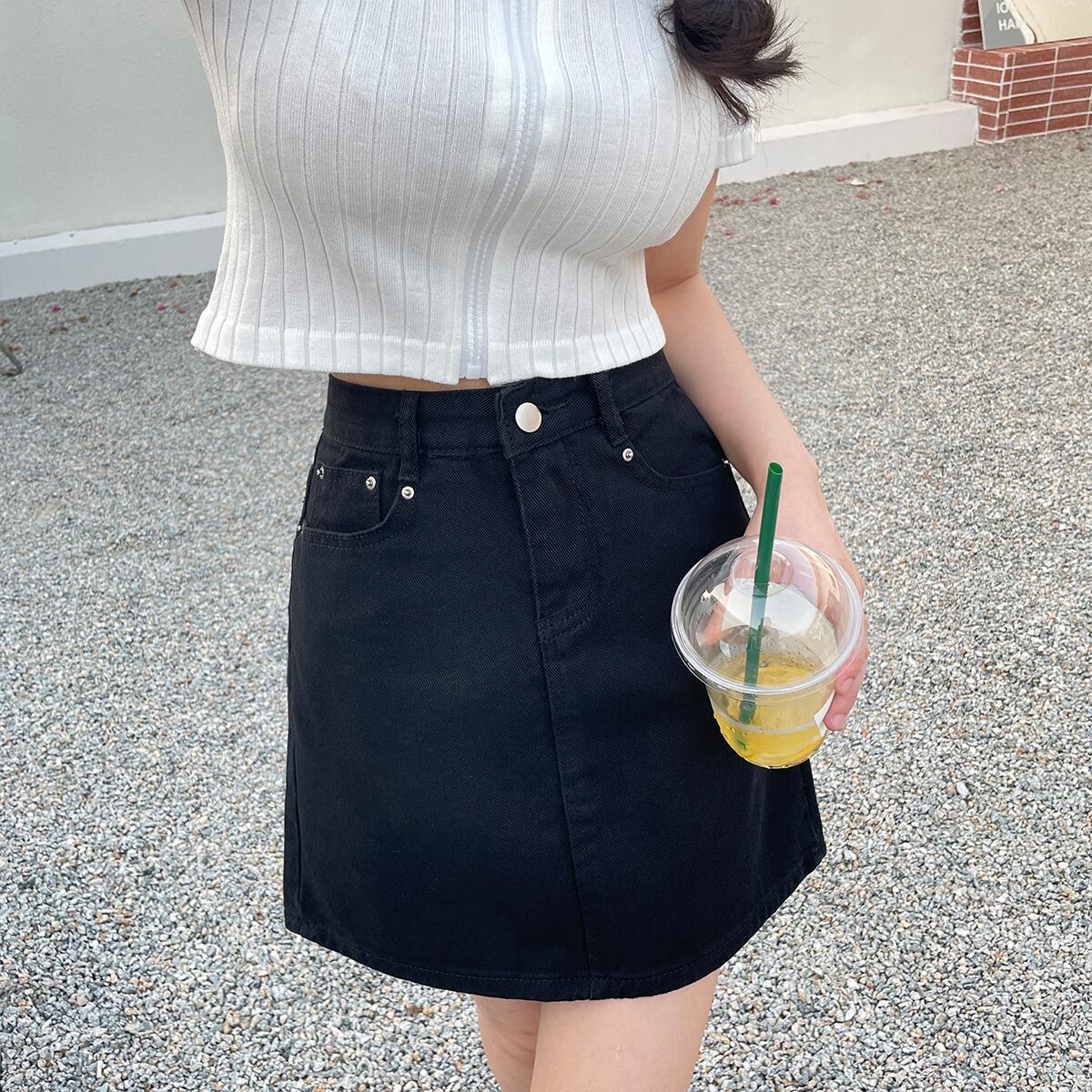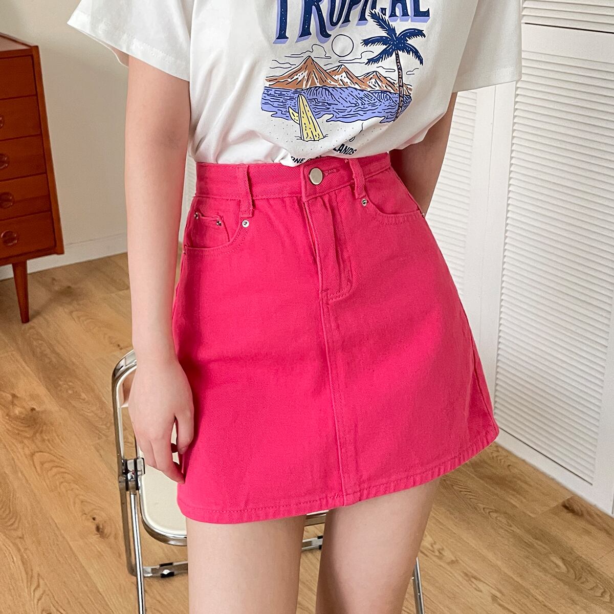 スカート サマー薄手Aラインハイウェストウェストショートソリッド カラー 夏物 ソリッドカラー クレセントシティ46975388902