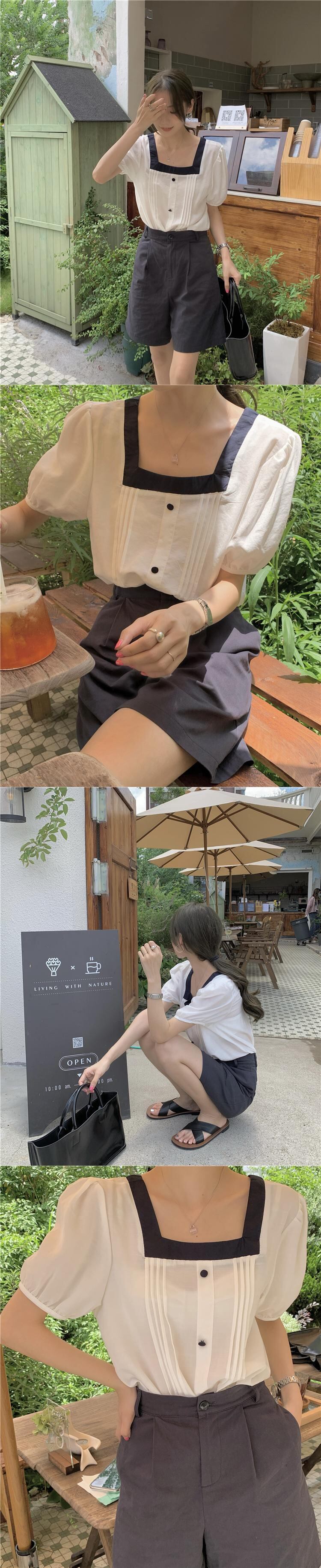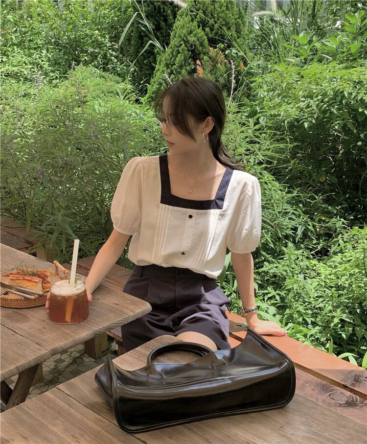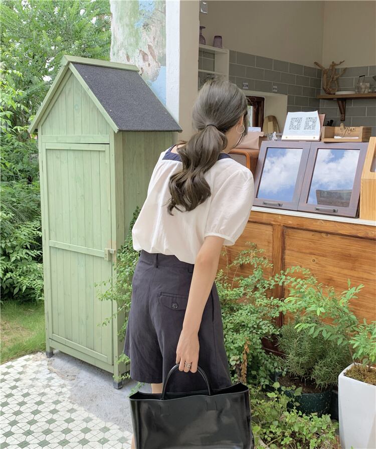 色:白のシャツ,ネイビーショーツ