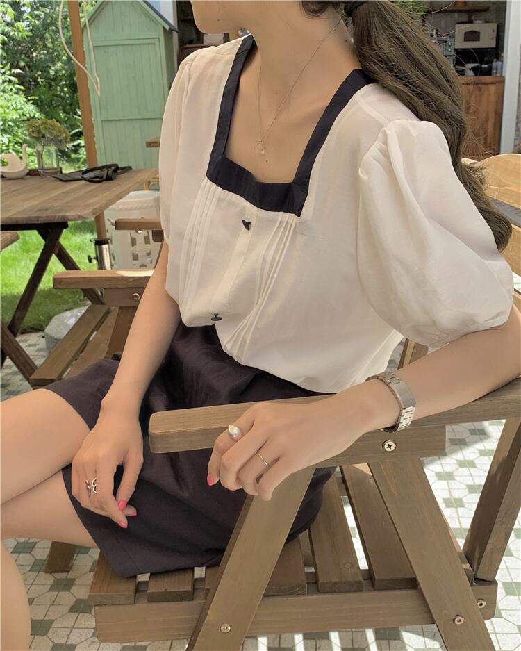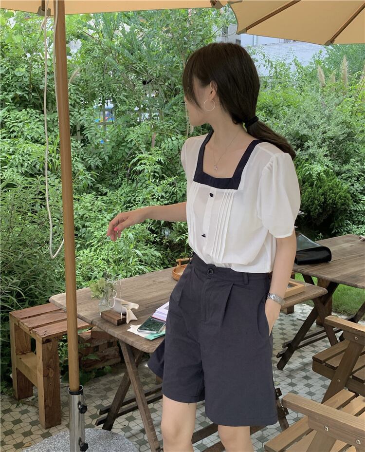 サマースタンダードカラーホワイト半袖スリーブシャツ ルーズウェスト薄手ワイドレッグショーツ ショート レトロ ハーフスリーブ 夏物 ブルマー ワイドパンツ スクウェア クレセントシティ70232502891