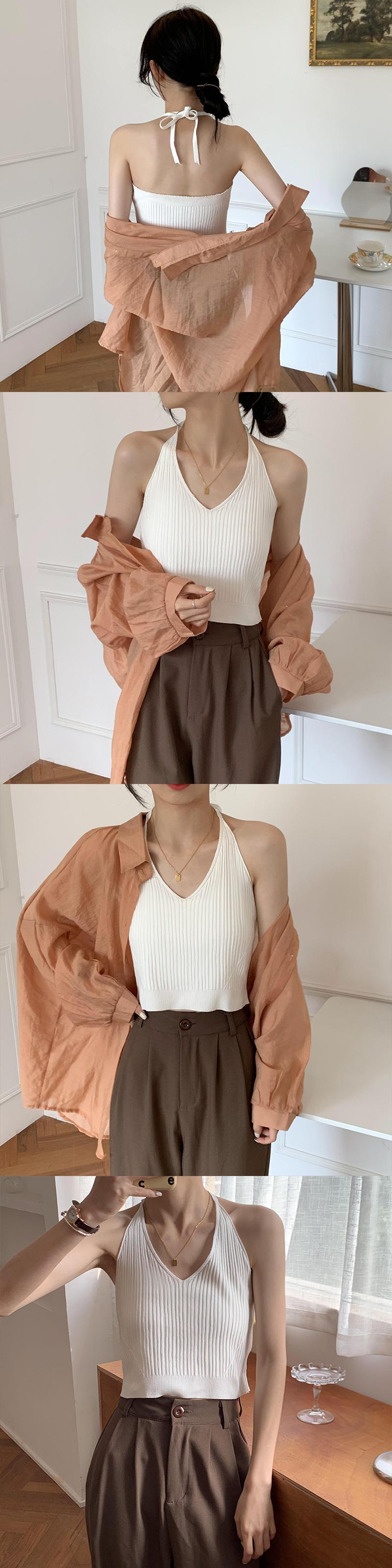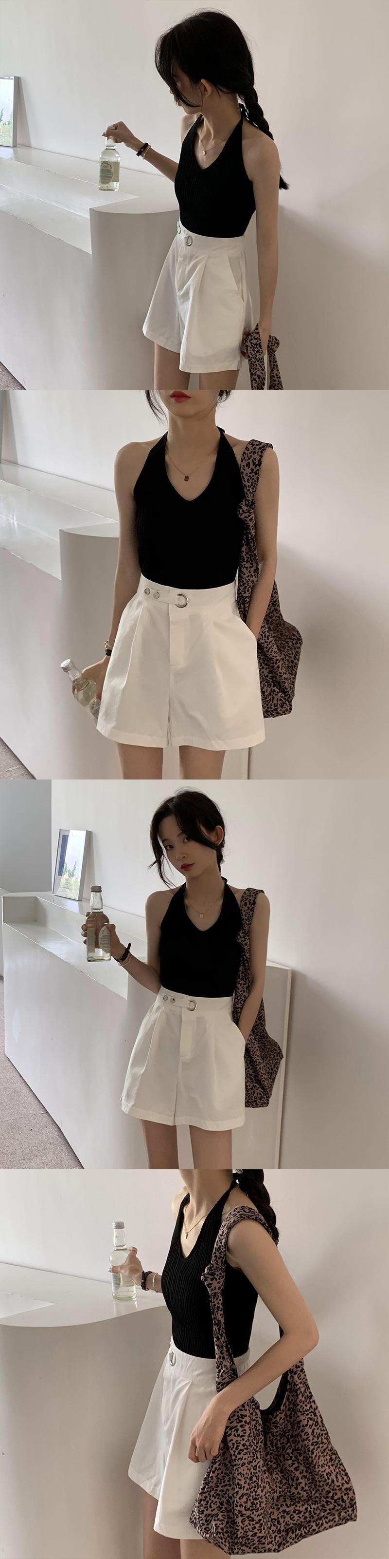 ホルターサマースリムショートノースリーブトップス 半袖 ハーフスリーブ 夏物 クレセントシティ54571069361