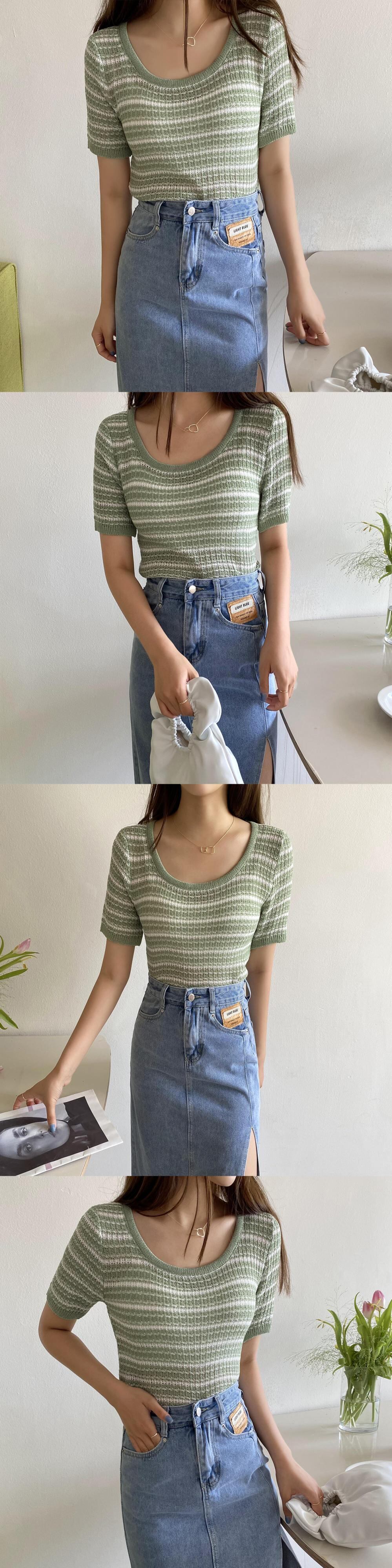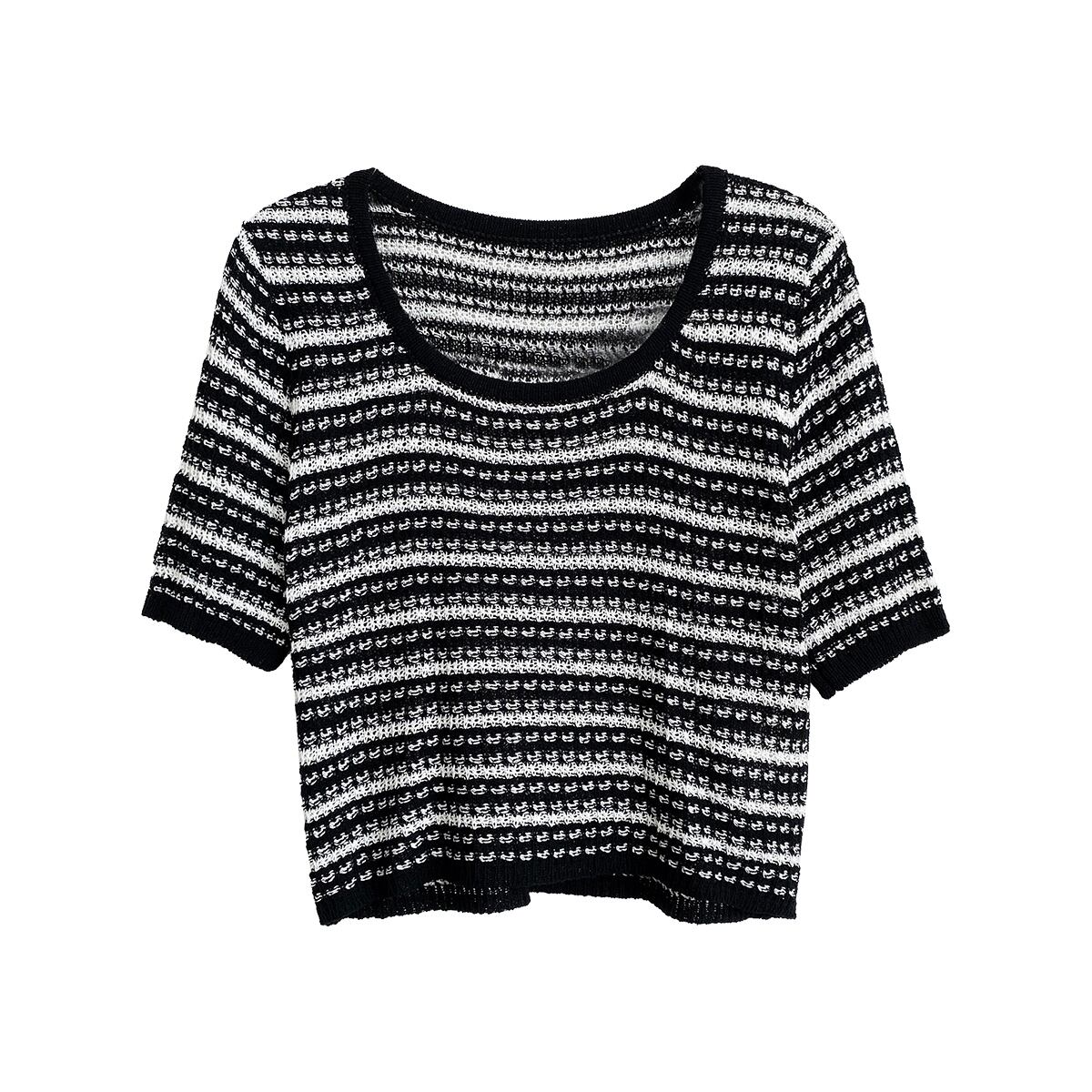 ストライプTシャツ サマールーズカラー薄手セーター トップス 夏物 クレセントシティ40173959462