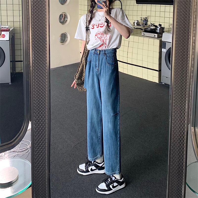 ジーンズ レディースサマースタンダードハイウェストルーズ薄手パンツ レトロ 夏物 クレセントシティ19527217962