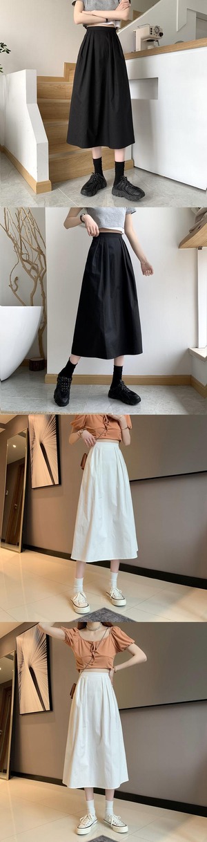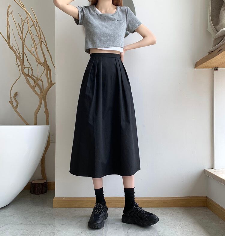 ブラックAラインスカート サマーハイウェスト薄手 夏物 クレセントシティ97487656461