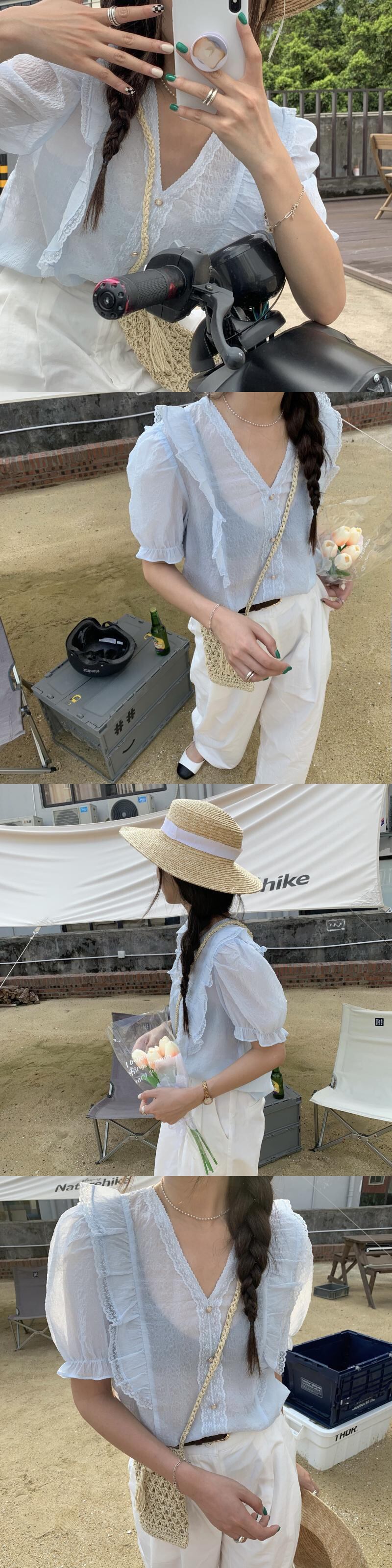 シャツ サマーVネックシフォンルーズ 大人ガーリー スウィート キュート カジュアル 夏物 クレセントシティ28949085857