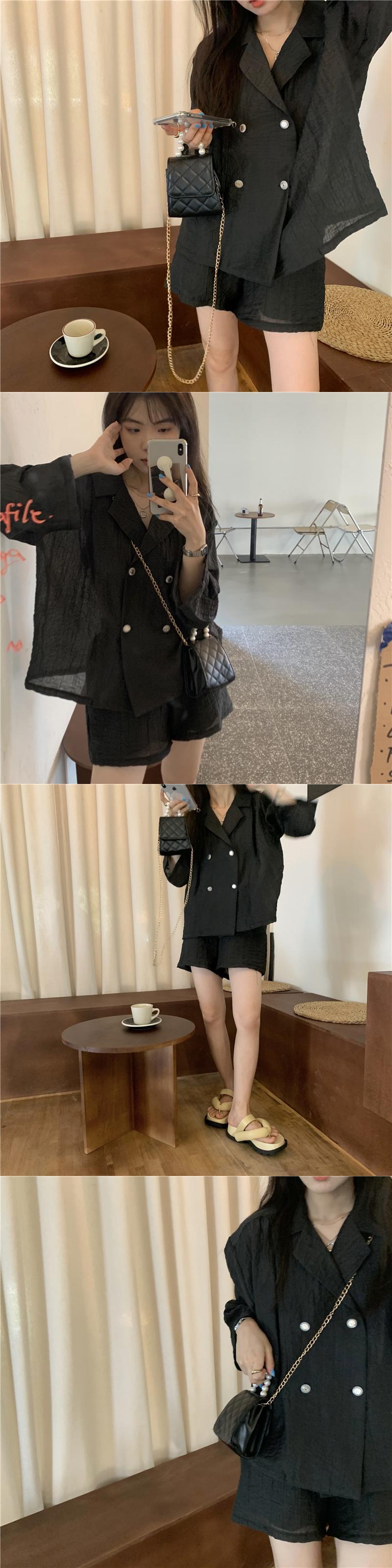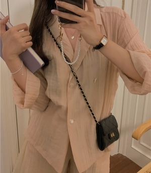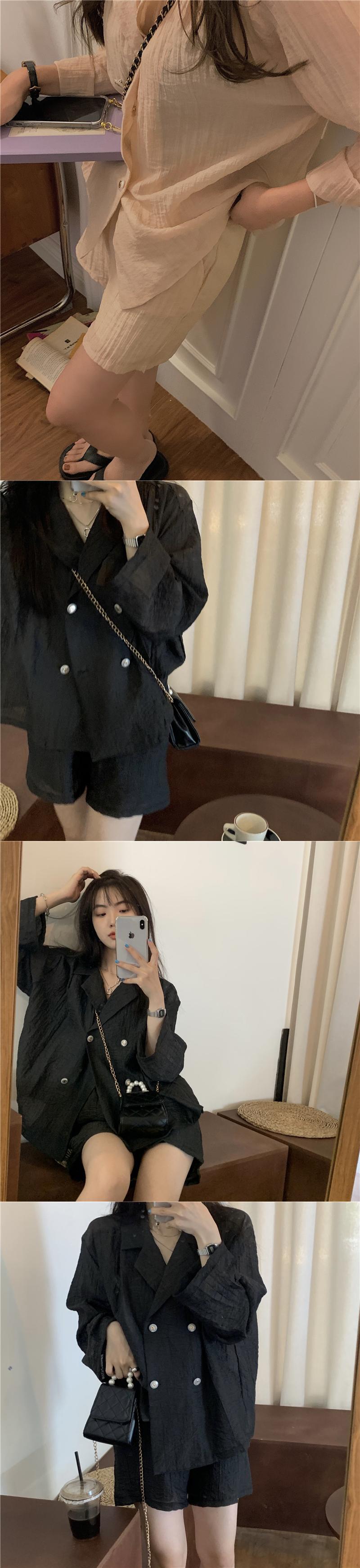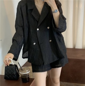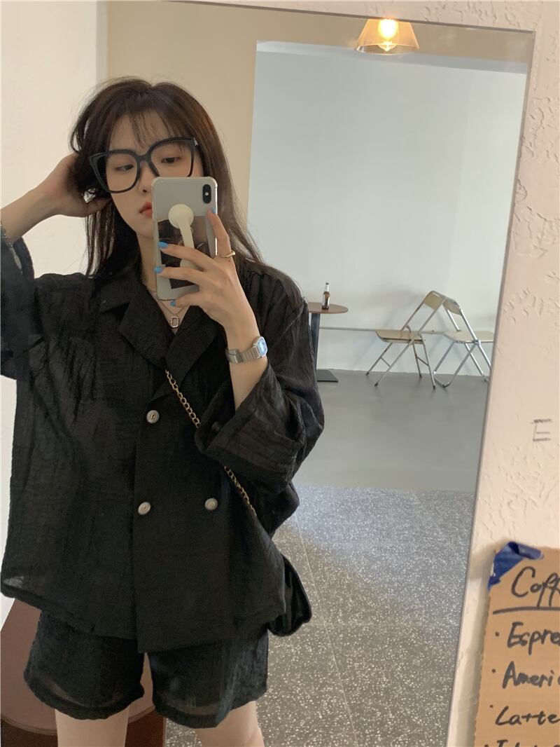 サマー薄手シャツ 長袖スリーブトップス ルーズウェストワイドレッグショーツ セット ロング ストリート 夏物 ブルマー ワイドパンツ クレセントシティ79337954077