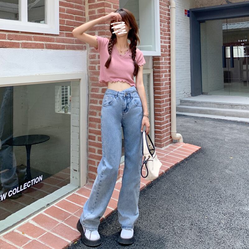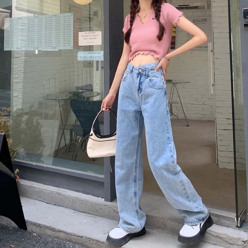 ハイウェストウェストジーンズ レディースルーズ薄手パンツ クレセントシティ59043853587