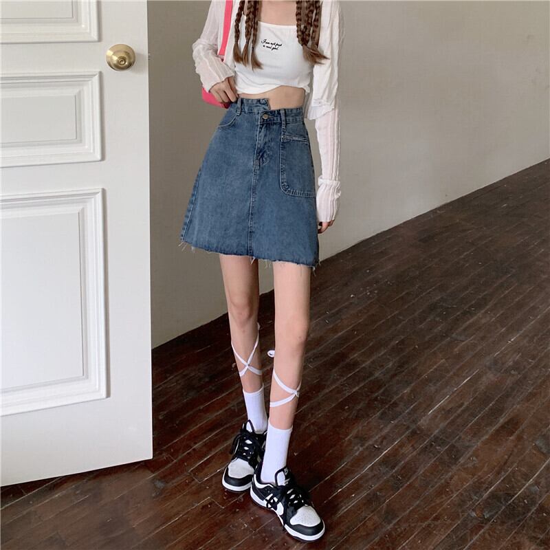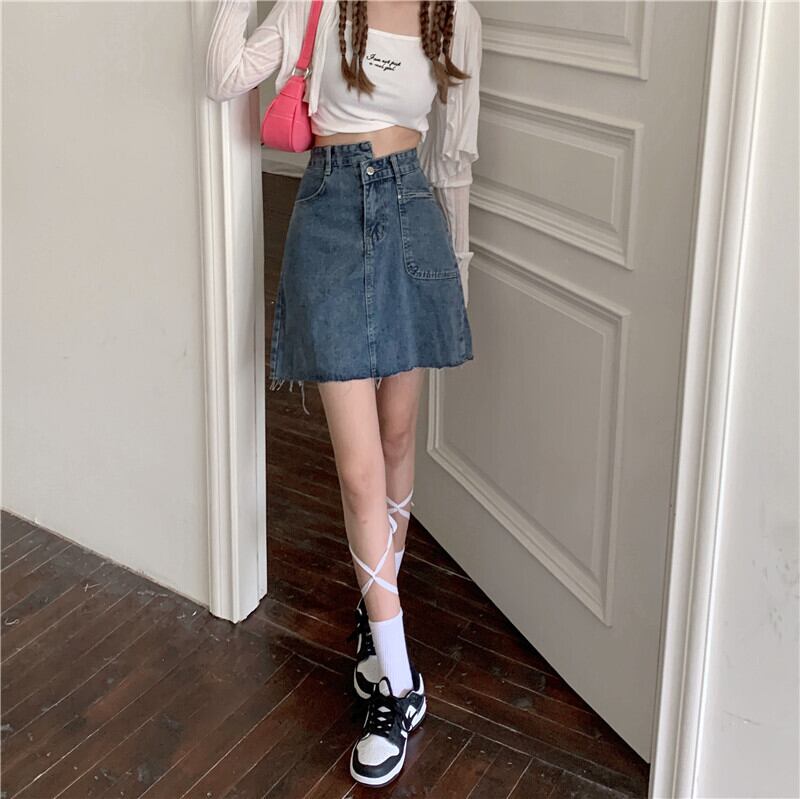 スカート サマーハイウェストウェスト薄手Aライン 夏物 クレセントシティ28813467850