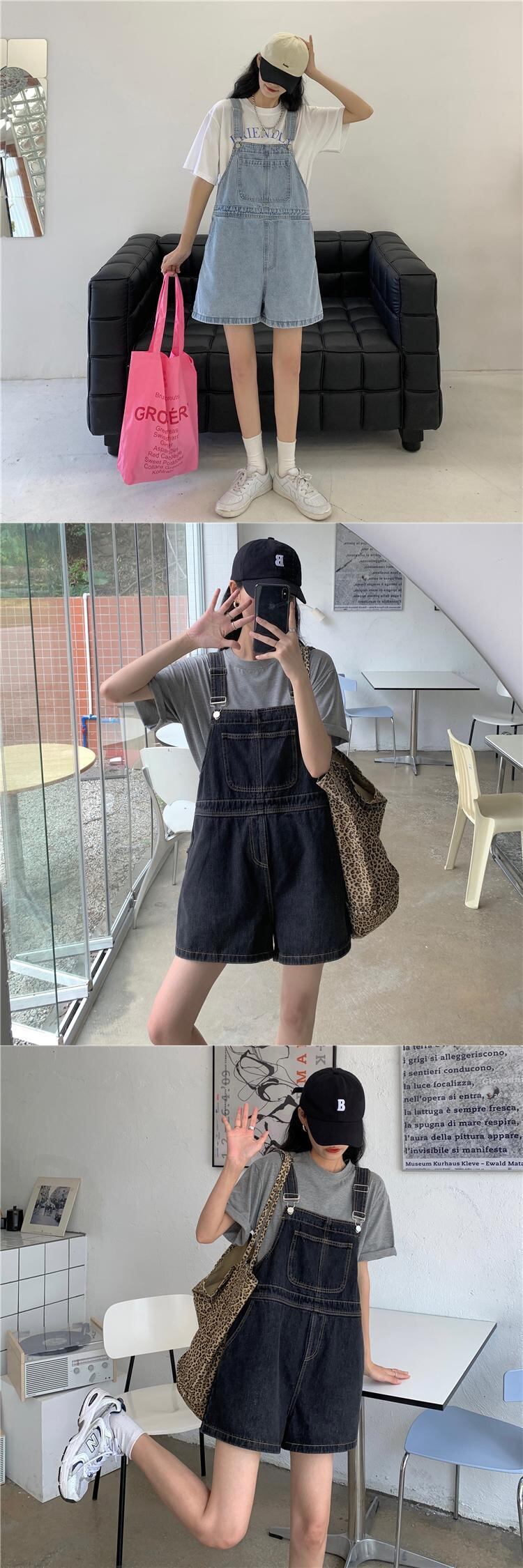 スタンダードオーバーオール サマー薄手ルーズハイウェストウェストワイドレッグショーツ レトロ 夏物 ブルマー ワイドパンツ クレセントシティ26224754509