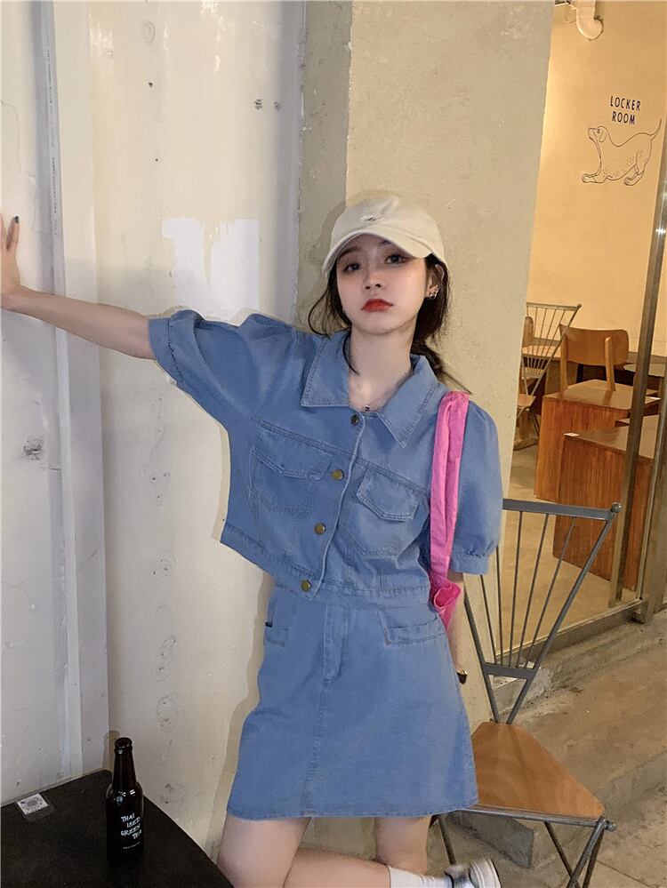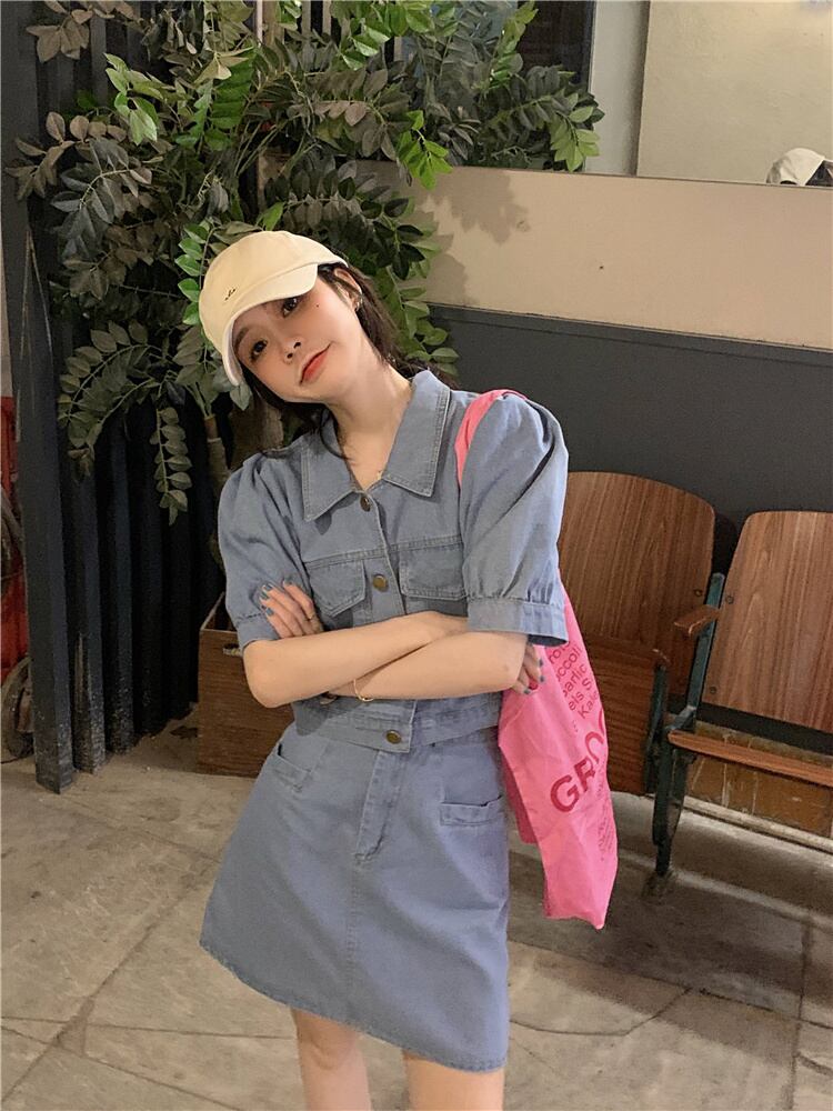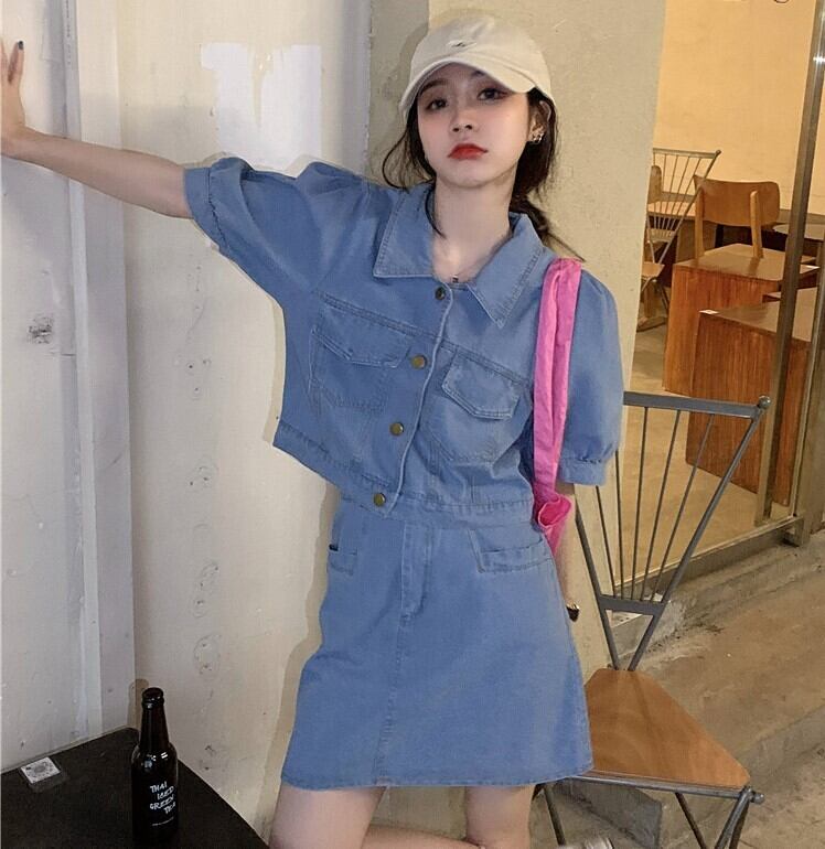 サマースリーブトップス レディース薄手ハイウェストAラインスカート 夏物 クレセントシティ46093144719