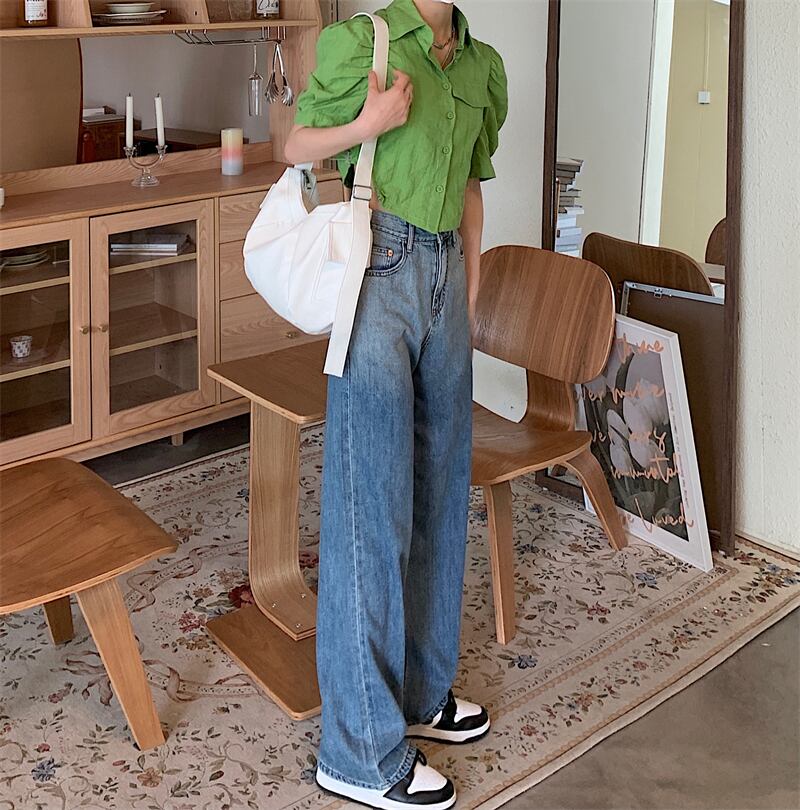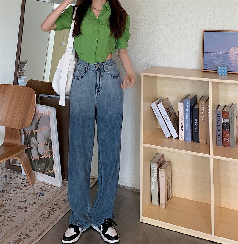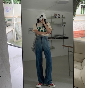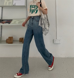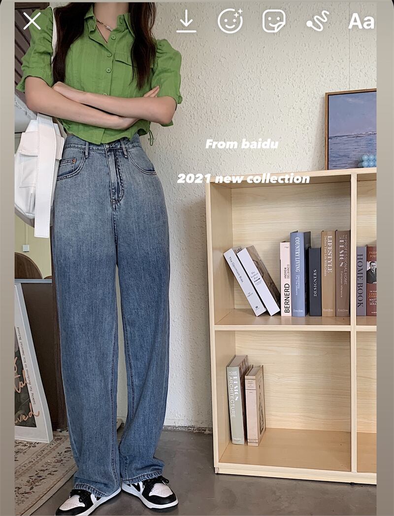 ジーンズ サマーカジュアルルーズロングハイウェストウェストパンツ 夏物 クレセントシティ76739927860