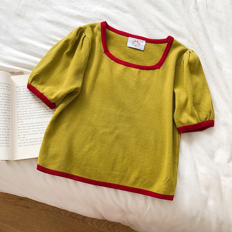 ショートスリーブTシャツ サマースリムセーター トップス 夏物 スクウェア クレセントシティ85935399652