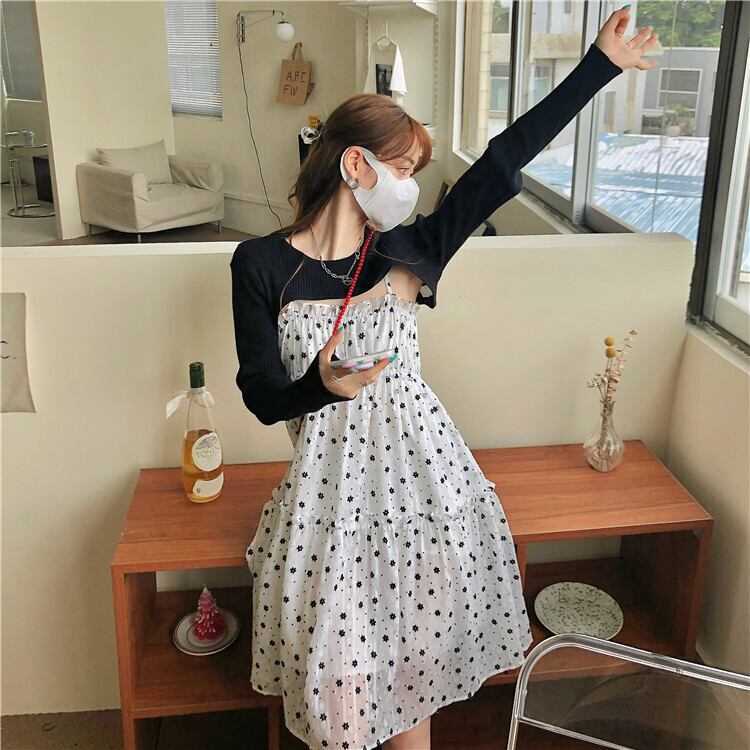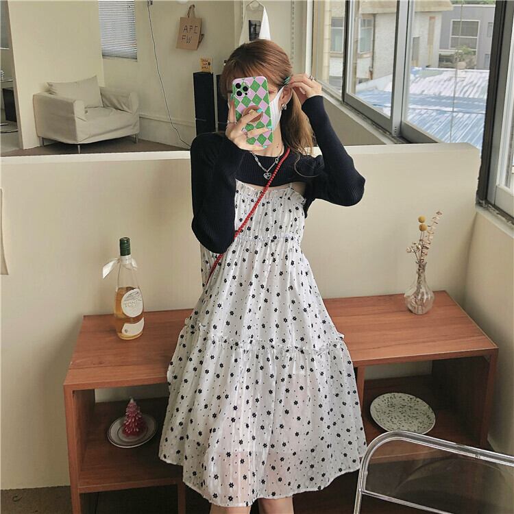 フローラルルーズドレス サマーブラックセーター ロング 夏物 花柄 クレセントシティ45883473517