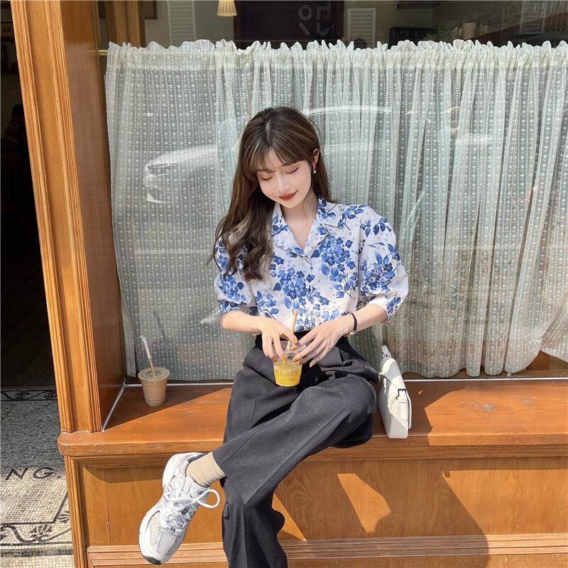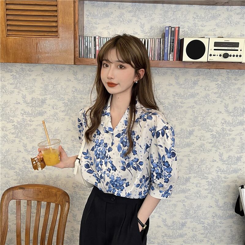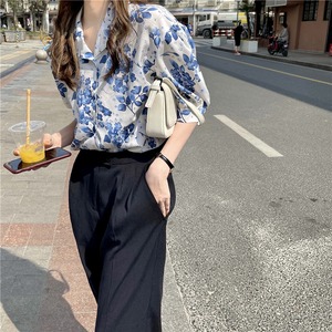 スリーブFlowerデザイン シャツ サマースタイルルーズ薄手 夏物 フラワーデザイン クレセントシティ20128498136
