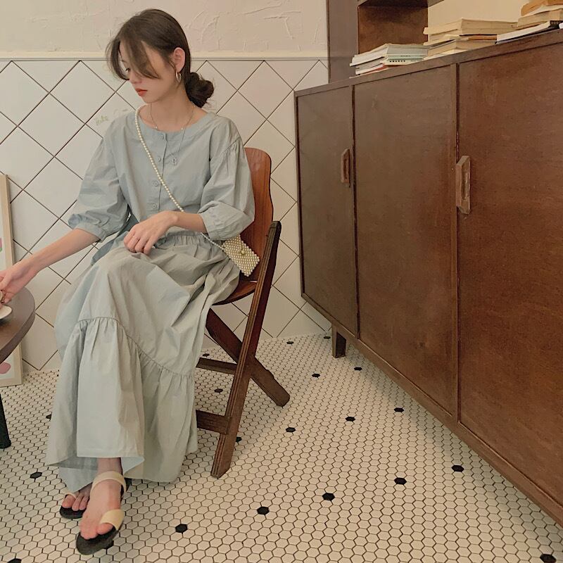 スタンダードルーズ薄手ロングドレス レトロ クレセントシティ29489314031